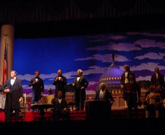 The Hall of Presidents has stood the test of time for one basic reason, which is that seeing all of the presidents standing on one stage is a very powerful image. With this line the attraction transforms from the mere spectacle of Audio Animatronics, to something that is much more thought-provoking. As the names of the presidents are read, moments in history pass through our mind. "A mirror of ourselves" is a fantastic way of putting the representation the presidents have to their time and to the people of that time.