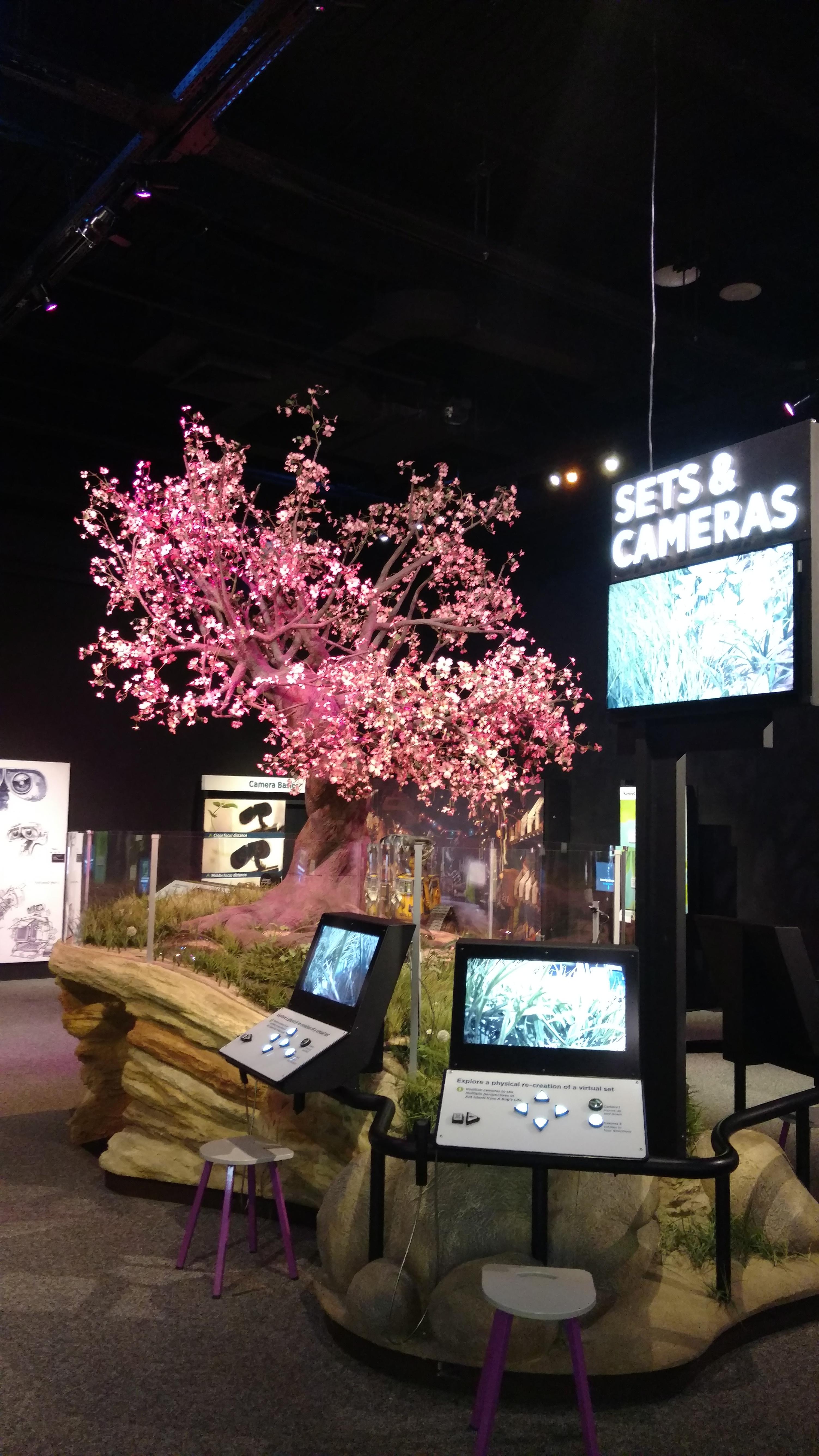 It is not just an exhibit but it is interactive production pipeline where visitors can get hands on experience in every step of the storytelling process from Modeling, Rigging, Surfaces, Sets and Cameras, Lighting, Animation, Simulation and Rendering.