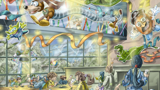 The Play Room: "Round up your posse, alert Star Command and head for an awesome play place inspired by the magic of Toy Story. Kids ages 2-12 can get in on the fun with incredible toys, slides and play equipment that are right out of a scene from the Disney·Pixar films."