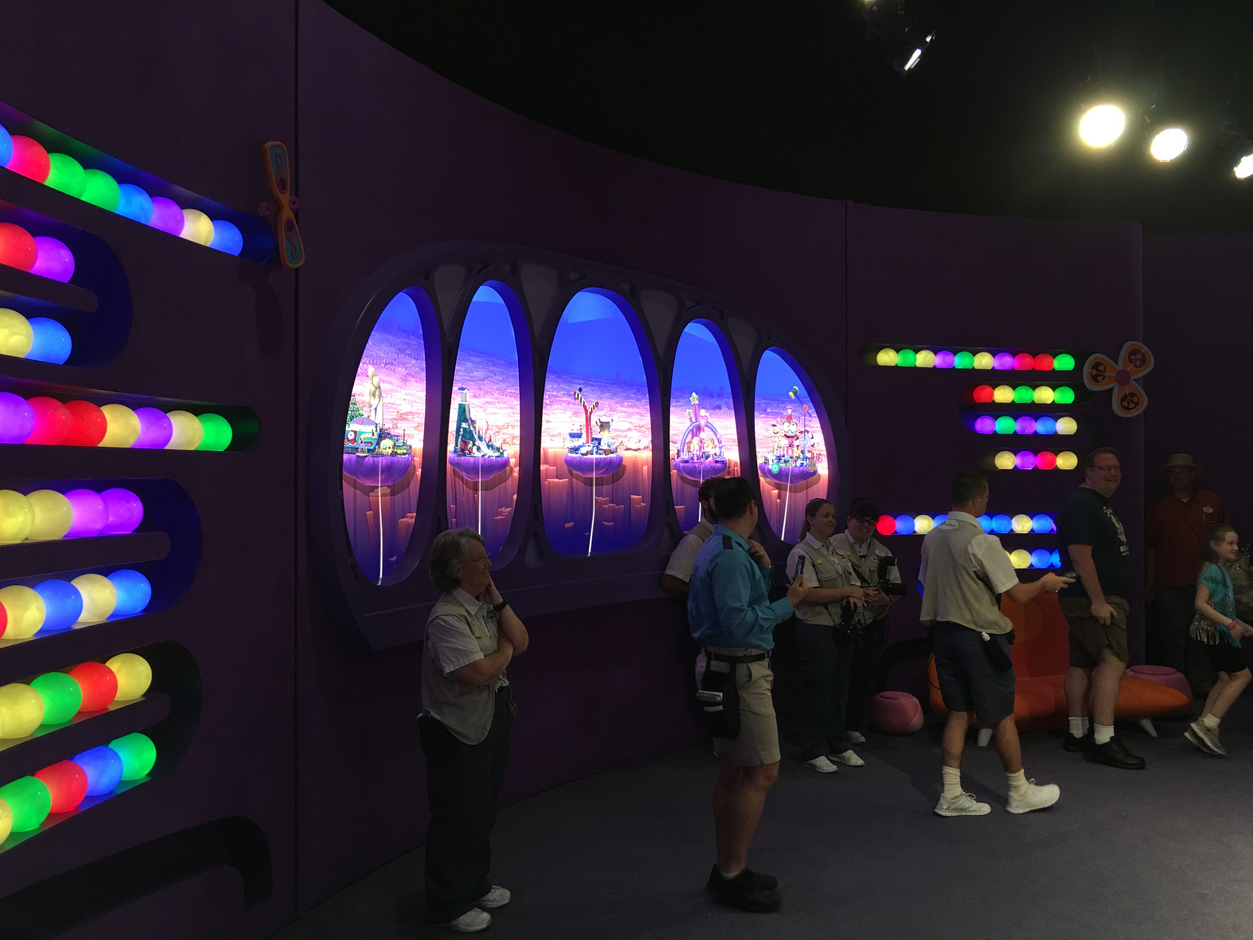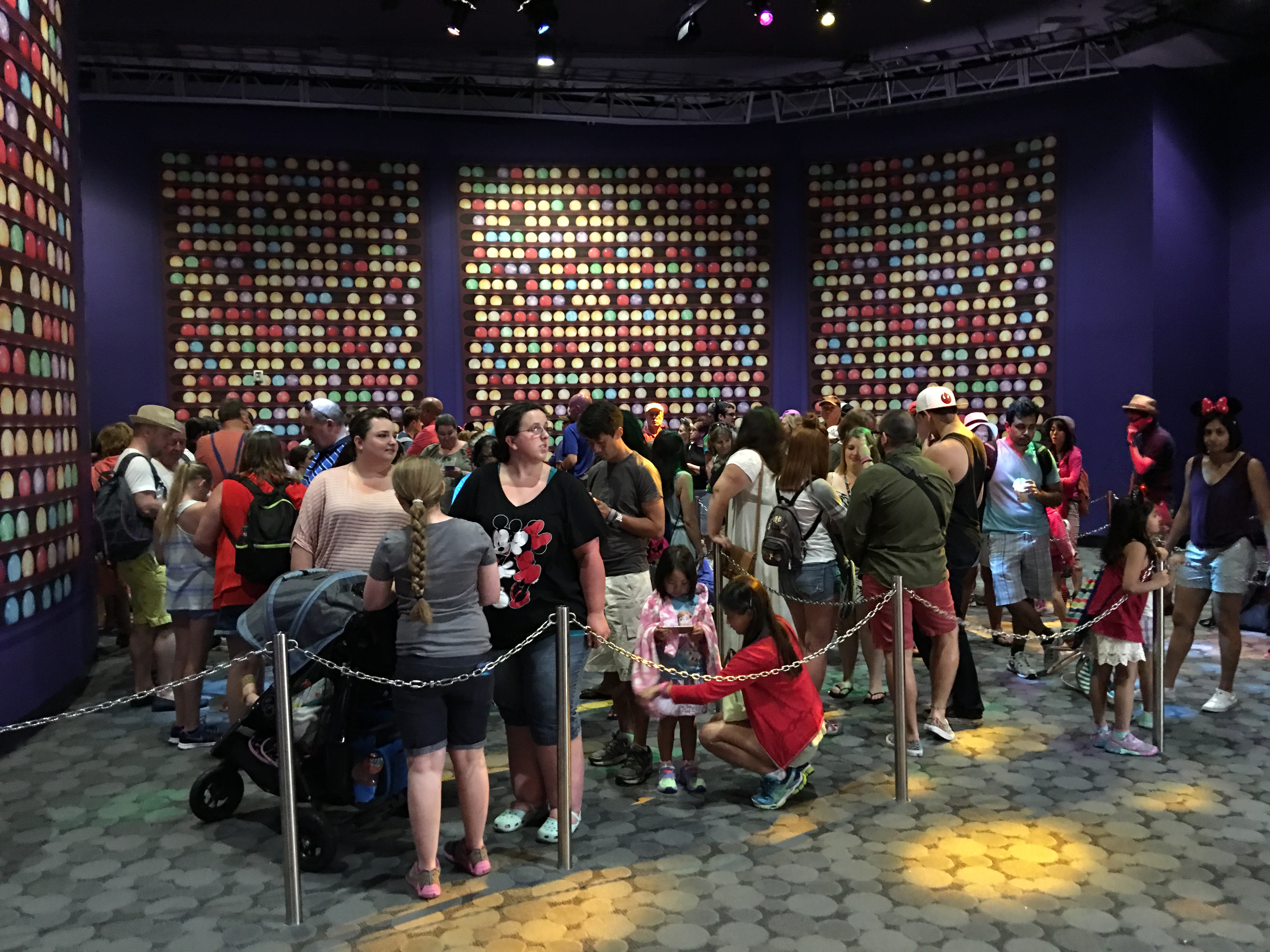 The newly expanded Epcot Character Spot just got a little more crowded with the addition of Joy and Sadness and their Headquarters. This meet and greet takes place in the former IBM Innoventions location and is a perfect addition. The queue is a step up in long-term memory storage (note the all sadness bottom row) and the word long is a key because the wait can easily be 45 minutes to an hour.