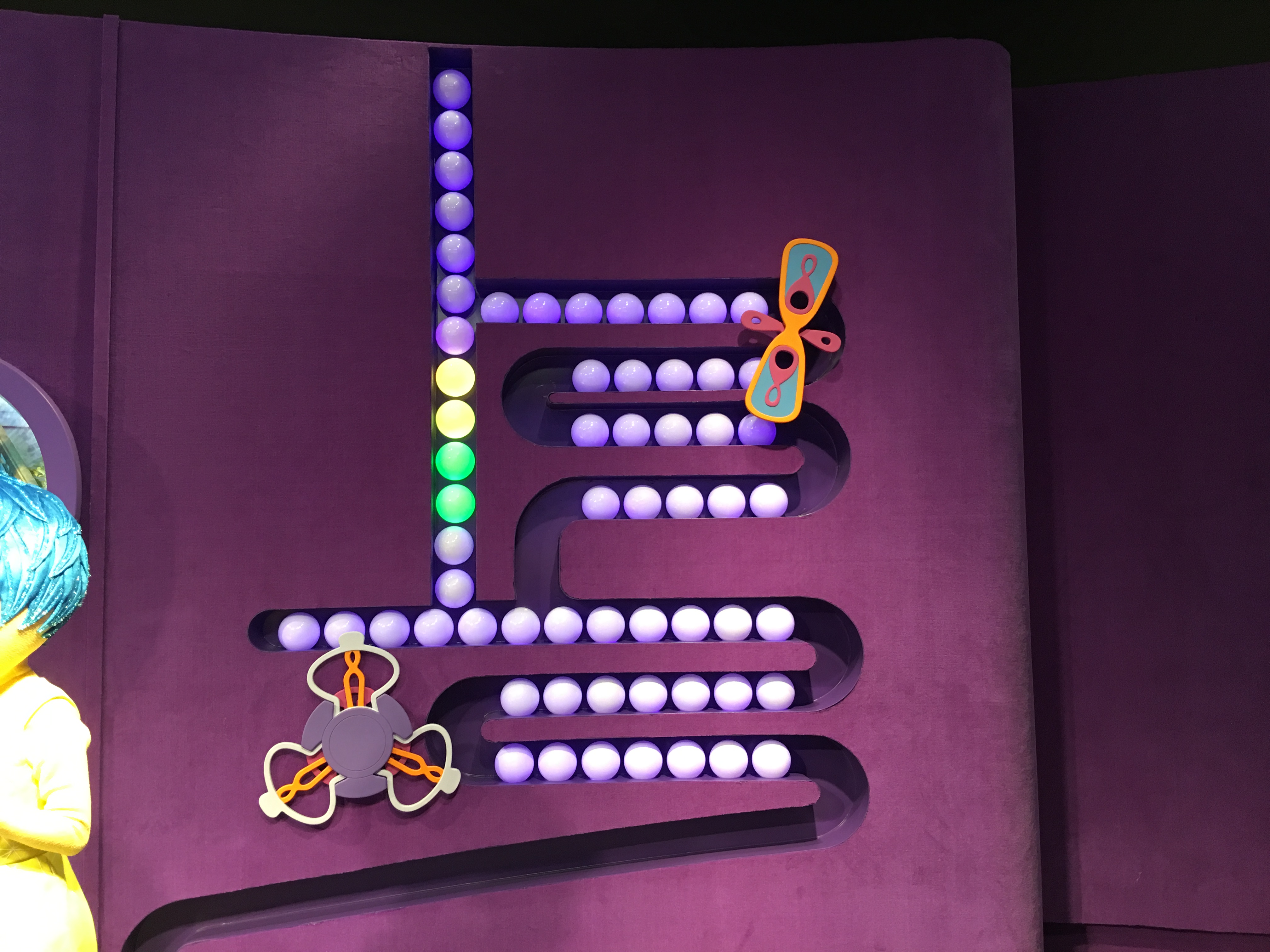 Once inside Headquarters, Joy and Sadness are perfect and the set up makes you feel like you just stepped into Riley's head with the viewport behind the characters and the windows out to the memories behind the Disney Photopass Cast Members.