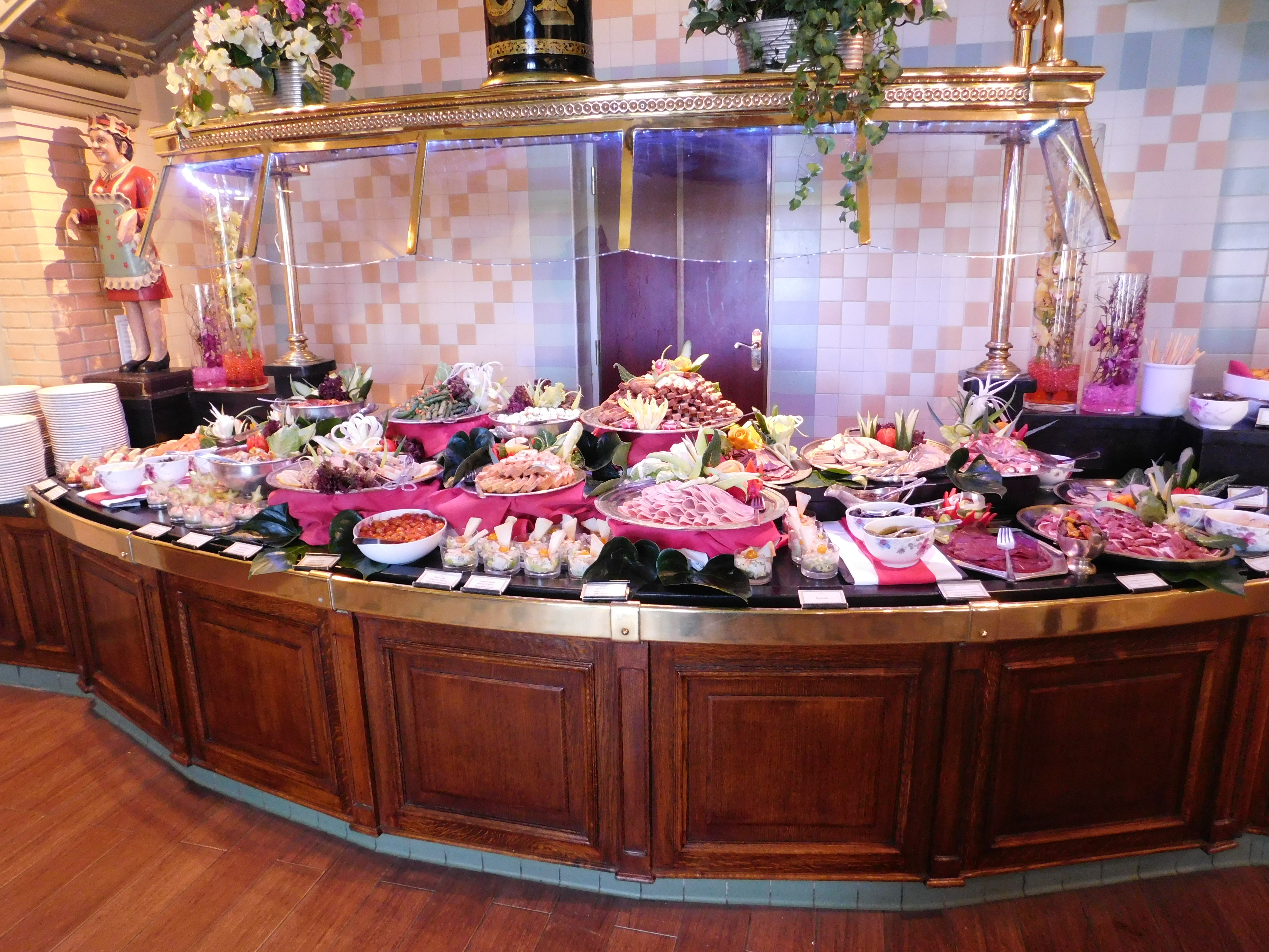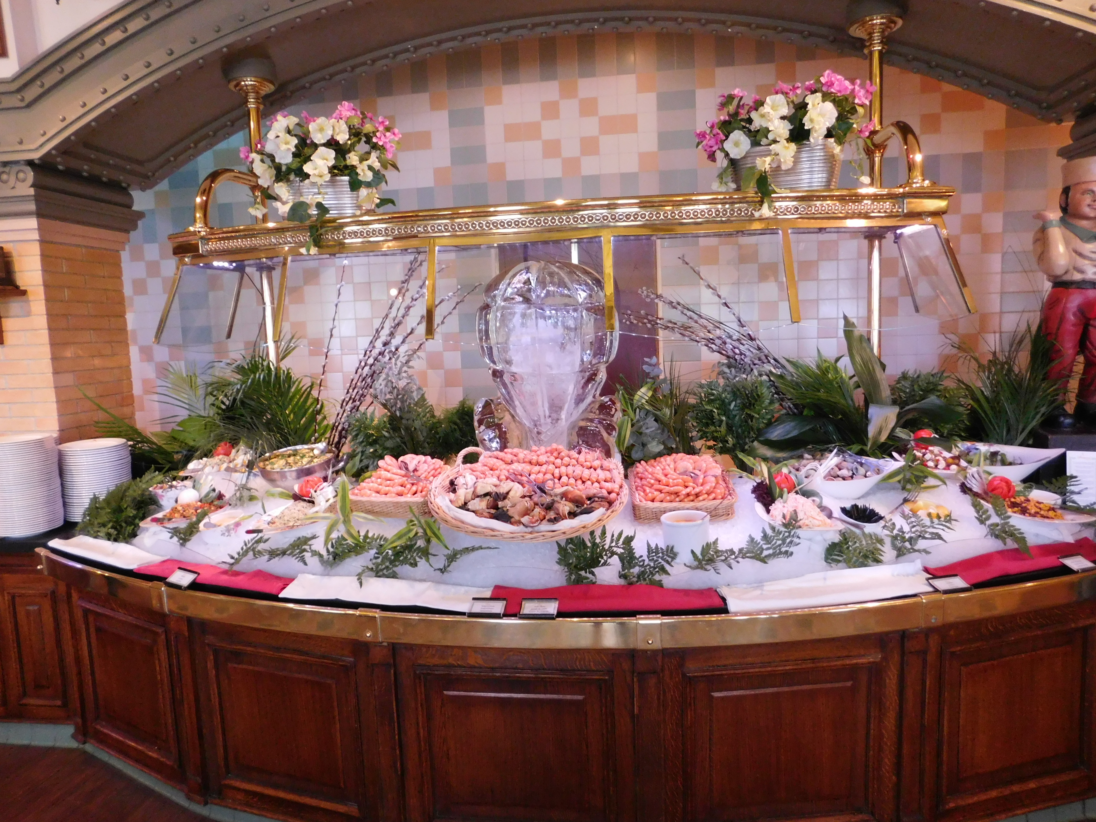 They had the five areas of the buffet set up for guests: the salads and cold dishes. Seafood, Hot food, meats and cheeses and dessert. They also had a section for children's' foods as well.