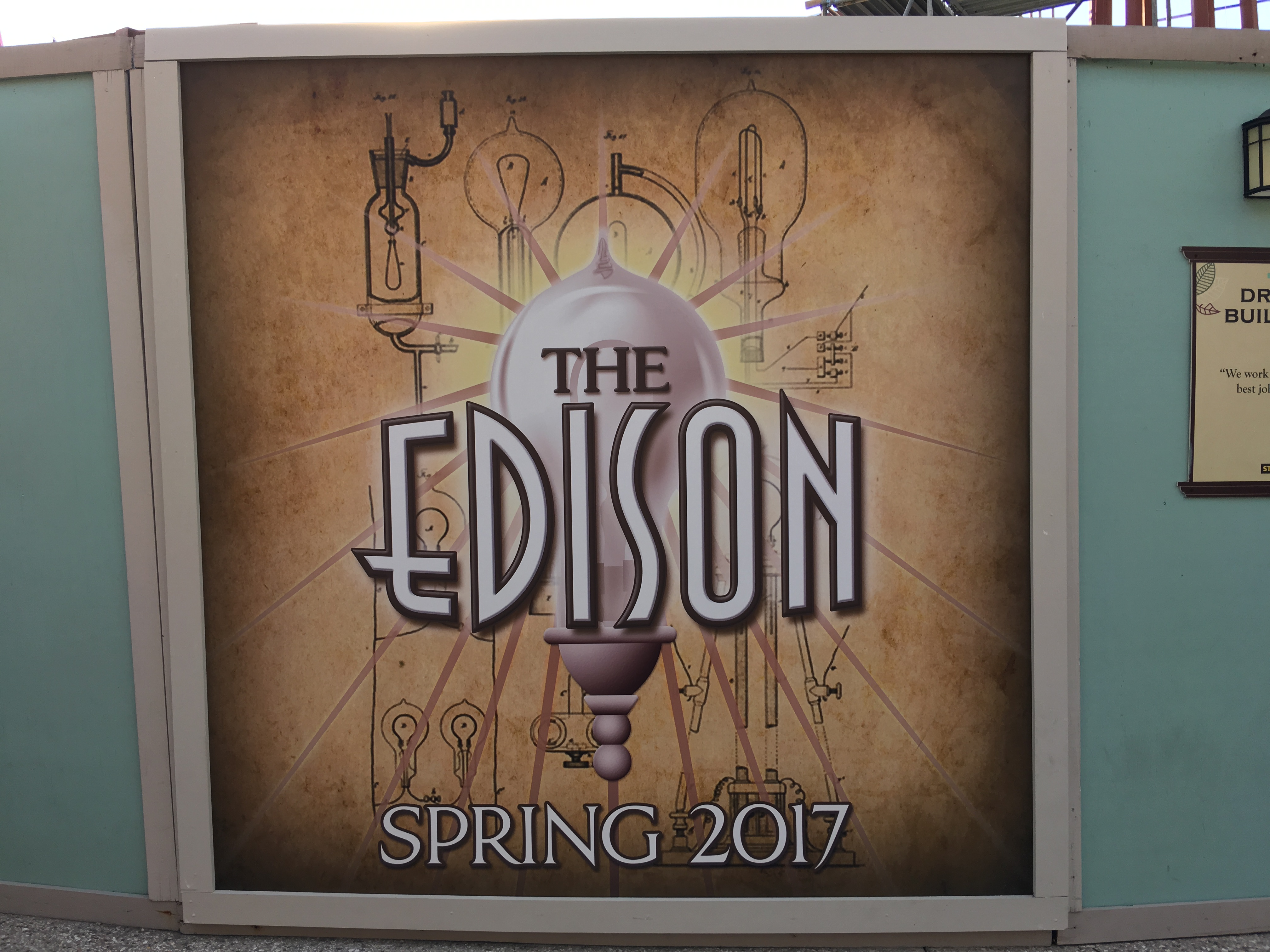 Across the way, signage has been added to the former Adventurers Club site, officially declaring it the future home of The Edison a lavish “Industrial Gothic”-style restaurant, bar and nighttime destination that will feature exceptional classic American food, artisanal craft cocktails and unparalleled live entertainment.