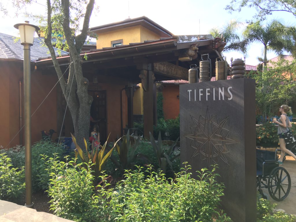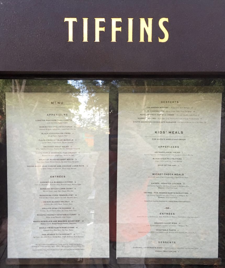 Tiffins is located behind — actually, connected to — Pizzafari along the path that will lead guests to Pandora: The World of Avatar next year and is modeled after Carthay Circle restaurant at Disney California Adventure as an upper scale restaurant which is reflected by the menu options and price points.
