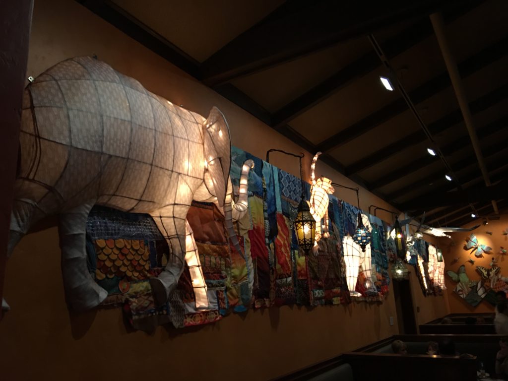 Tiffins has three distinct dining rooms, each with their own theme. The Safari Gallery, the former Camouflage Room of Pizzafari, is the largest of the three with beautiful light up animals that reminded me of Discovery Island and the Tree of Life.