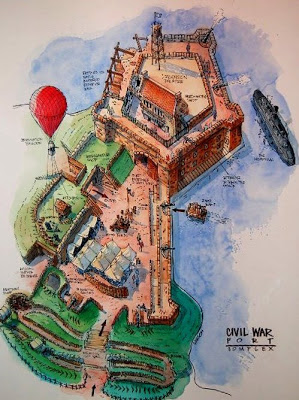 Civil War Fort – An authentic recreation of a Civil War fort would have made up this land with battlefield reenactments taking place on the surrounding land daily. At nighttime, guests would have been thrilled by the nightly reenactments of the Civil War naval battle on the adjoining bay between the ironclad ships Monitor and Merrimac.