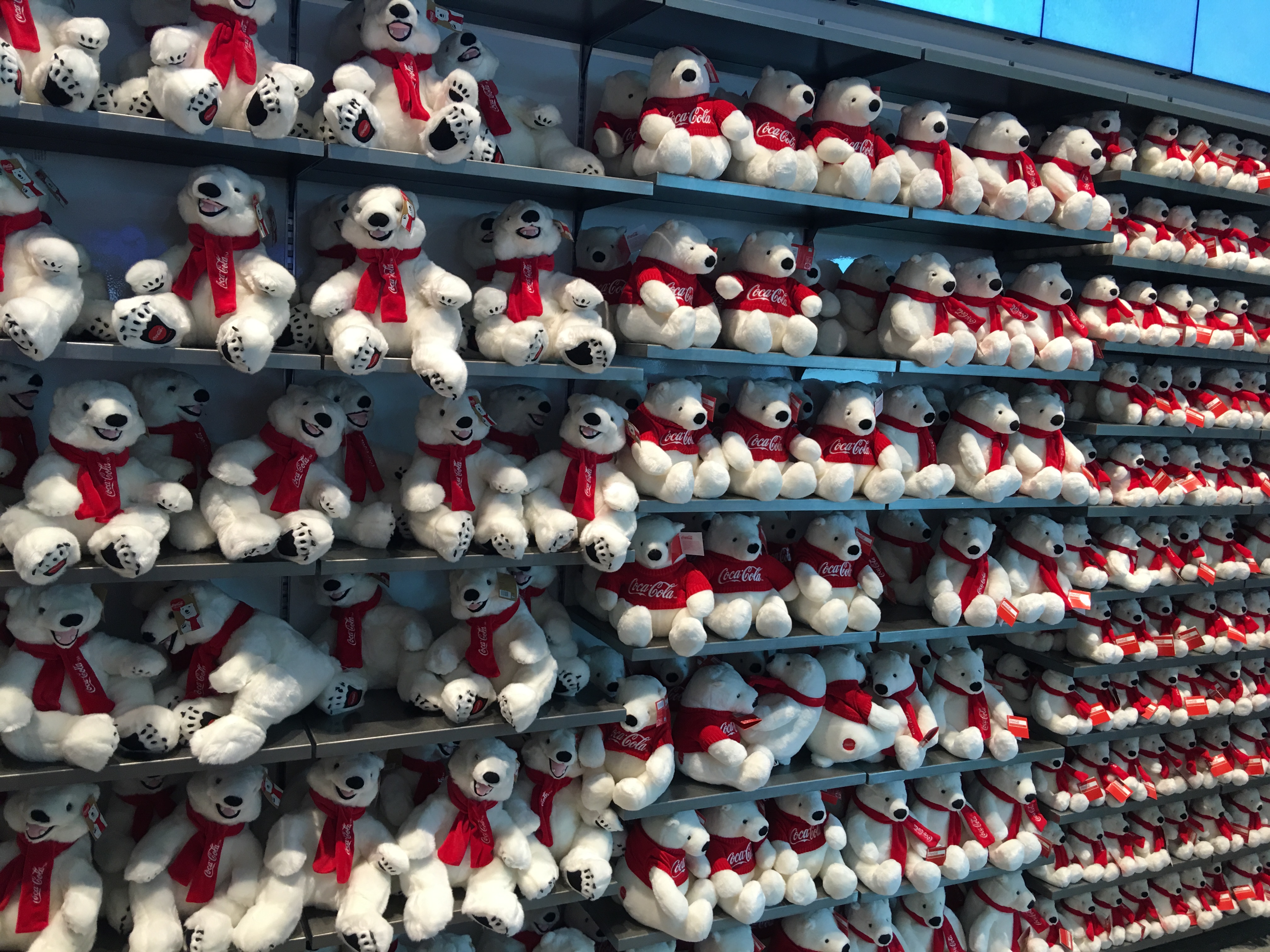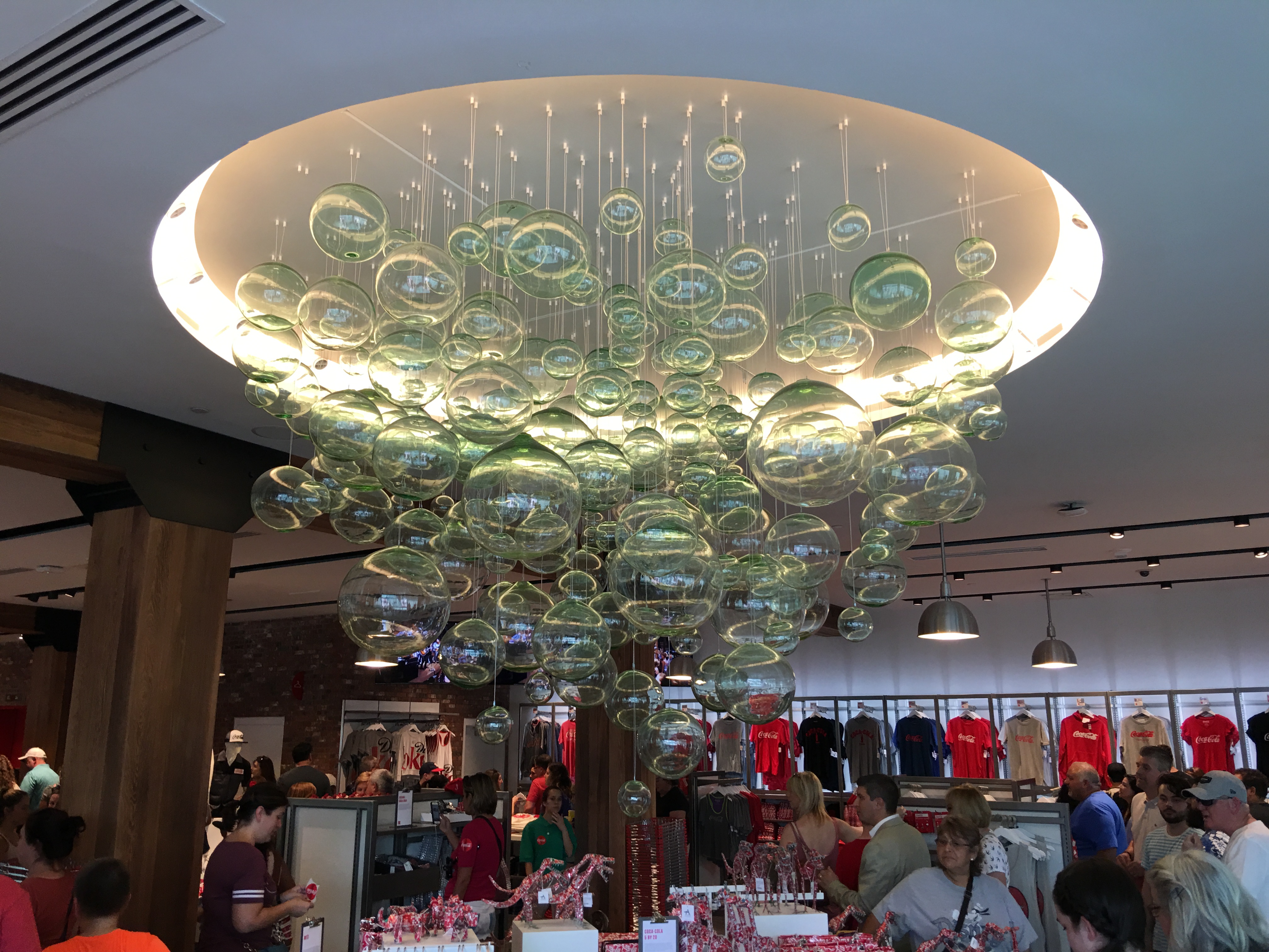 Once inside, guests are greeted by a 30-foot-wide blown-glass chandelier crafted from repurposed Coca-Cola bottles and hundreds upon hundreds of differenCoca-Cola branded items for purchase.