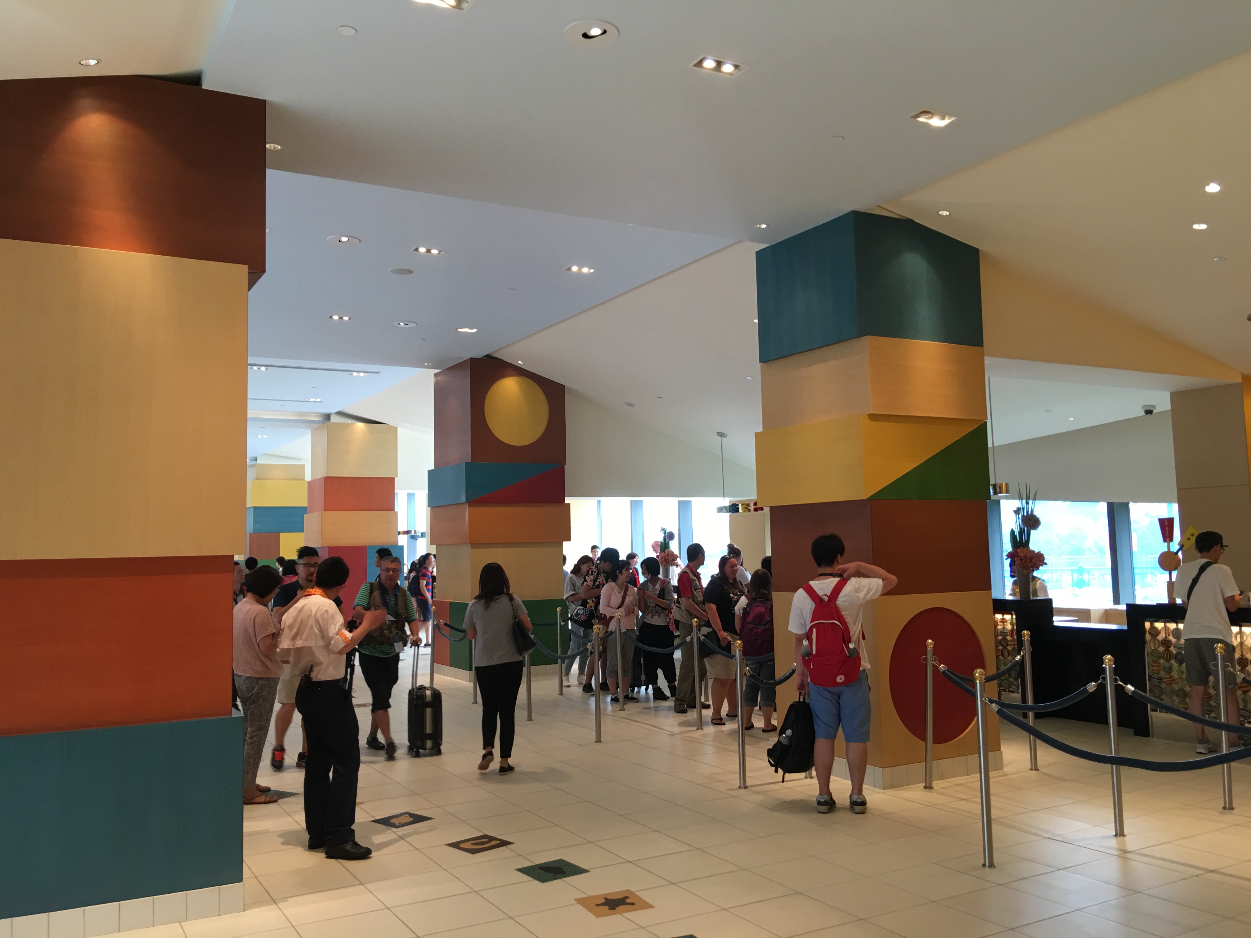 This lobby area is smaller with only six to eight check-in/out spots for guests and a guest service desk for ticket purchases, dining help, and local assistance.