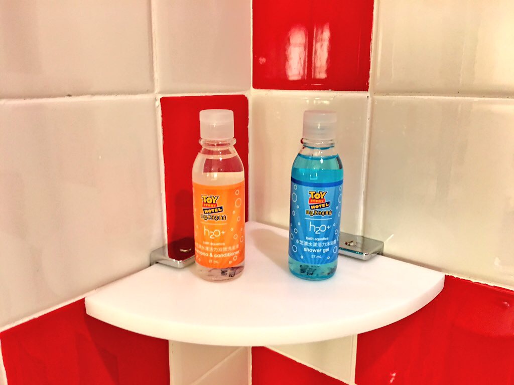 By far the thing that was most amazing about this hotel has to be the branding of EVERYTHING! If you have traveled to Walt Disney World or the Disneyland Resort, you have seen the same H2O+ shampoo and soaps, but that is not the case at the Toy Story Hotel.