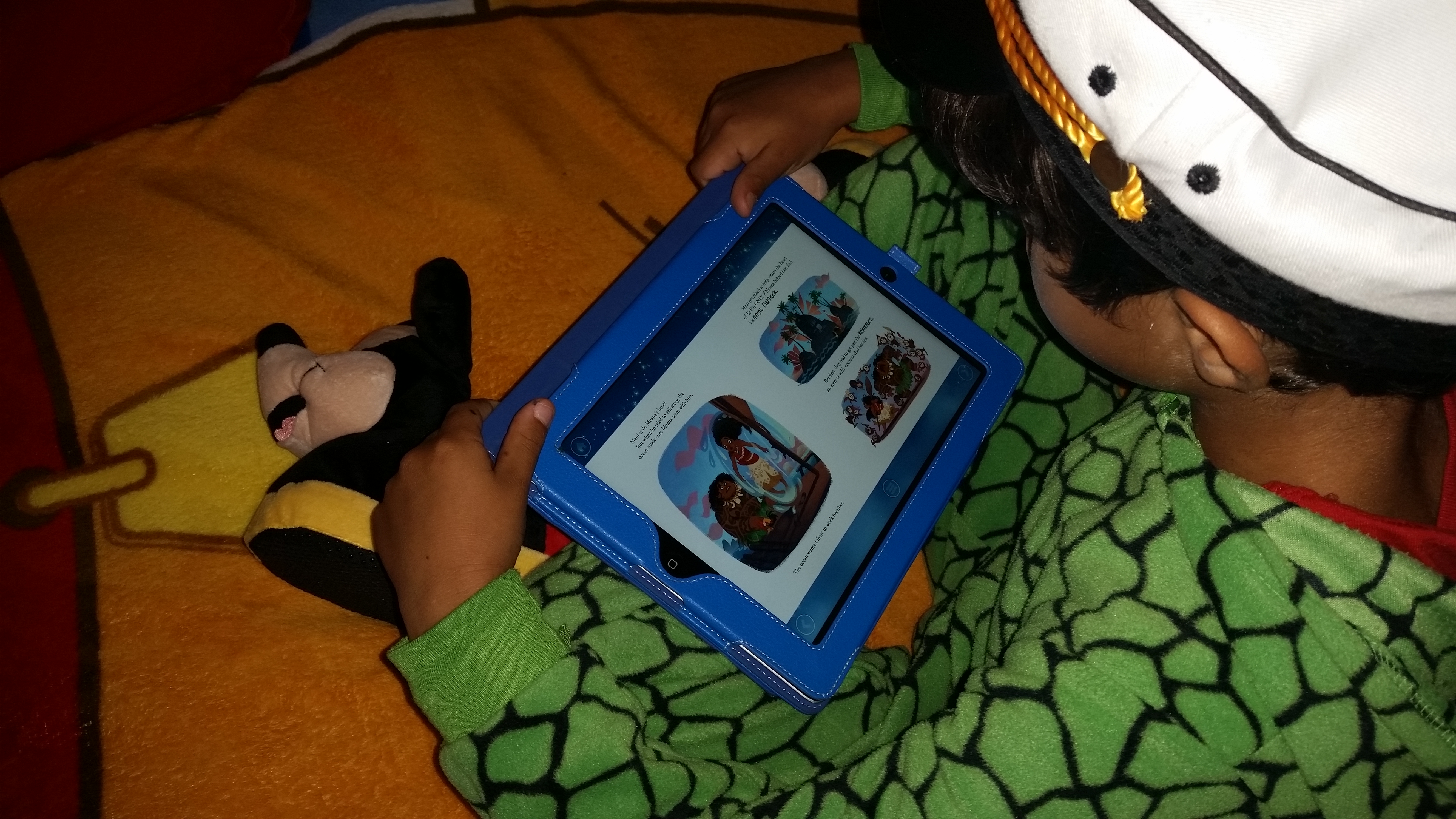 With a few clicks, we were reading a Level 2 reader entitled Moana Finds a Way. It highlights her determination throughout the film. The illustrations reminded us of the film’s beauty. We also picked out the Moana Little Golden Book version. The narrator’s inflection recalled Moana’s grandmother.