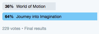 Yesterday, two Epcot attraction duked it out for last slot in Round 2 — the Extinct Eight. Who would have imagined that Figment and his friend Dreamfinder would roll over World of Motion to move on? Well, that's what happened: