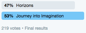 Yesterday, our final slot went to Epcot's original Journey into Imagination, which upset Horizons to move onto the next round: