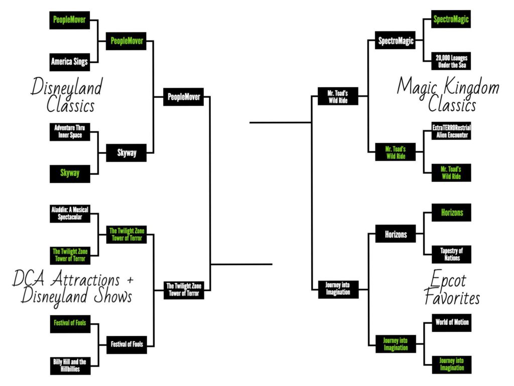 Be sure to come back tomorrow as we reveal the winner of today's poll and continue onward through our bracket to crown an extinct Disney attraction champion!