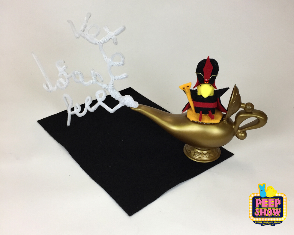 There is another Disney com-PEEP-itor. It comes from Gia Bongiovani. Her sculpture entitled “Jafar PEEP” is designed after the villain Jafar and the Genie's magic lamp complete with smoke from Disney's Aladdin.