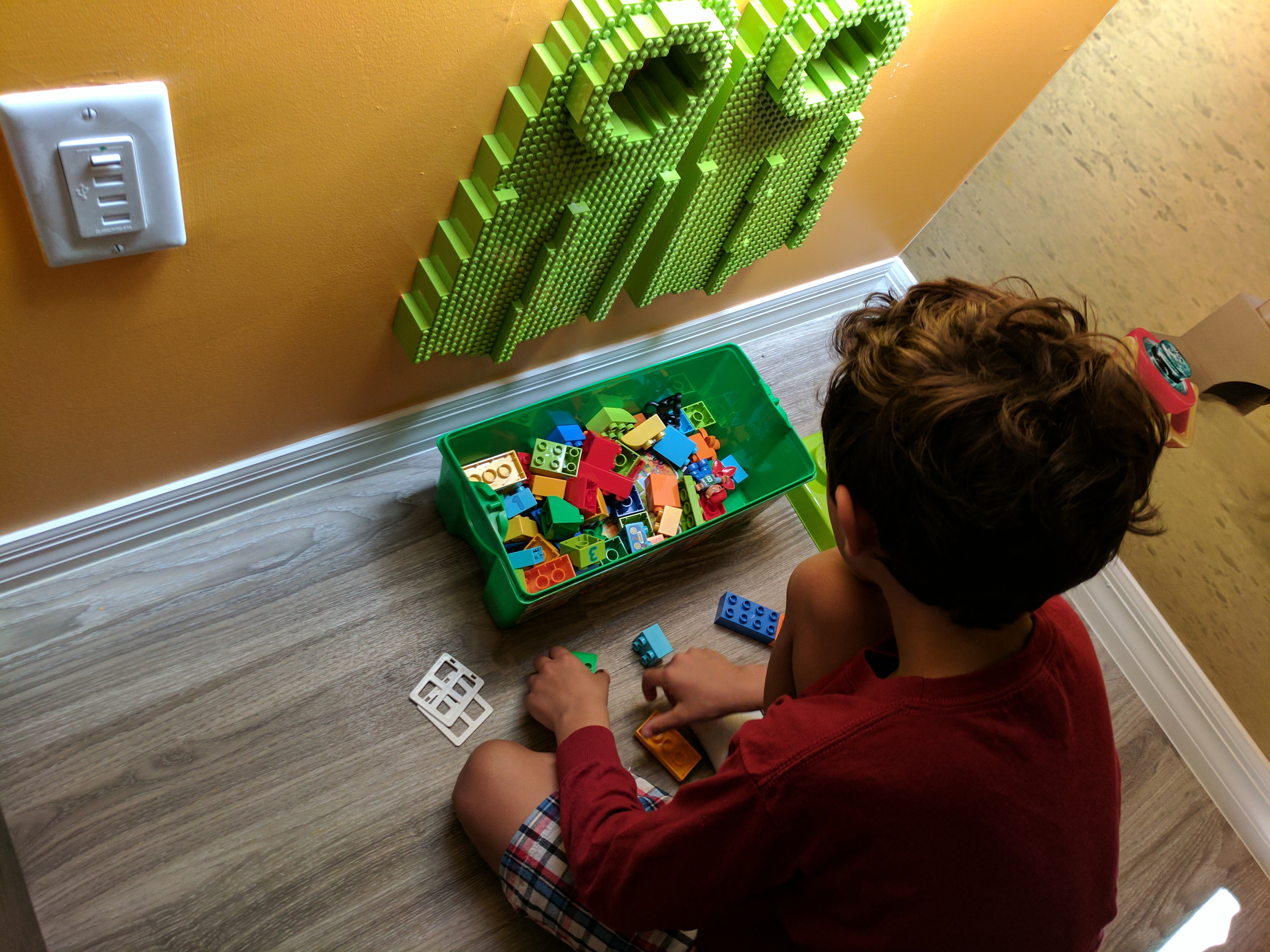 After examining the large Lego beach scenes, my little dude made his way past the curtain to the smaller “kids” room and discovered the provided Duplo box and began creating. They are free to enjoy during your stay.