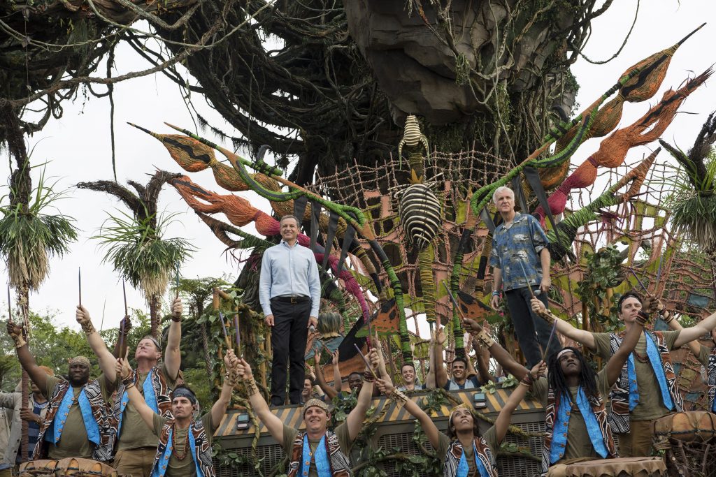 Jim, thanks for introducing us to all of the endless jaw-dropping wonders of Pandora, for your partnership on this grand expedition into an amazing world, and for believing that we could do the impossible together to deliver a spectacular experience our guests will never forget. Please welcome our partner in this great, great land, visionary, innovator, and storyteller, Jim Cameron.