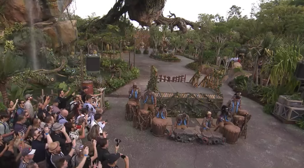 Today, Disney leadership, members of the media, and the cast of Avatar gathered for the dedication of Disney's Animal Kingdom's Pandora - The World of Avatar. The celebration featured a drum circle and remarks for Disney's Chairman and CEO Bob Iger along with Avatar creator James Cameron.