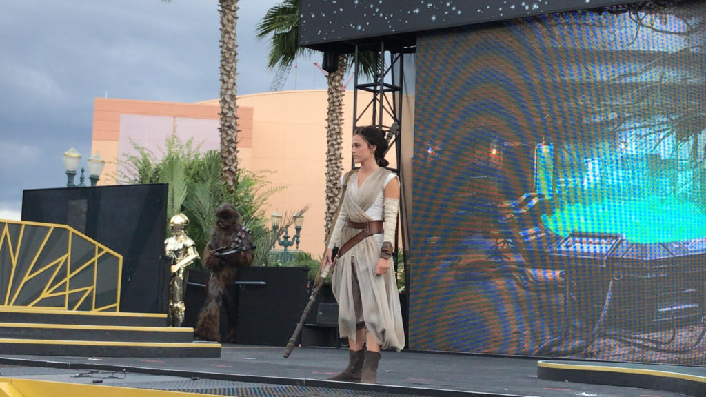 While that plan, appears to have been tabled, the show did reopen with a noticeable new addition. Rey, from The Force Awakens, has replaced BB-8 in the finale. She strikes her pose from the end of the film where she presents a lightsaber to Luke Skywalker.