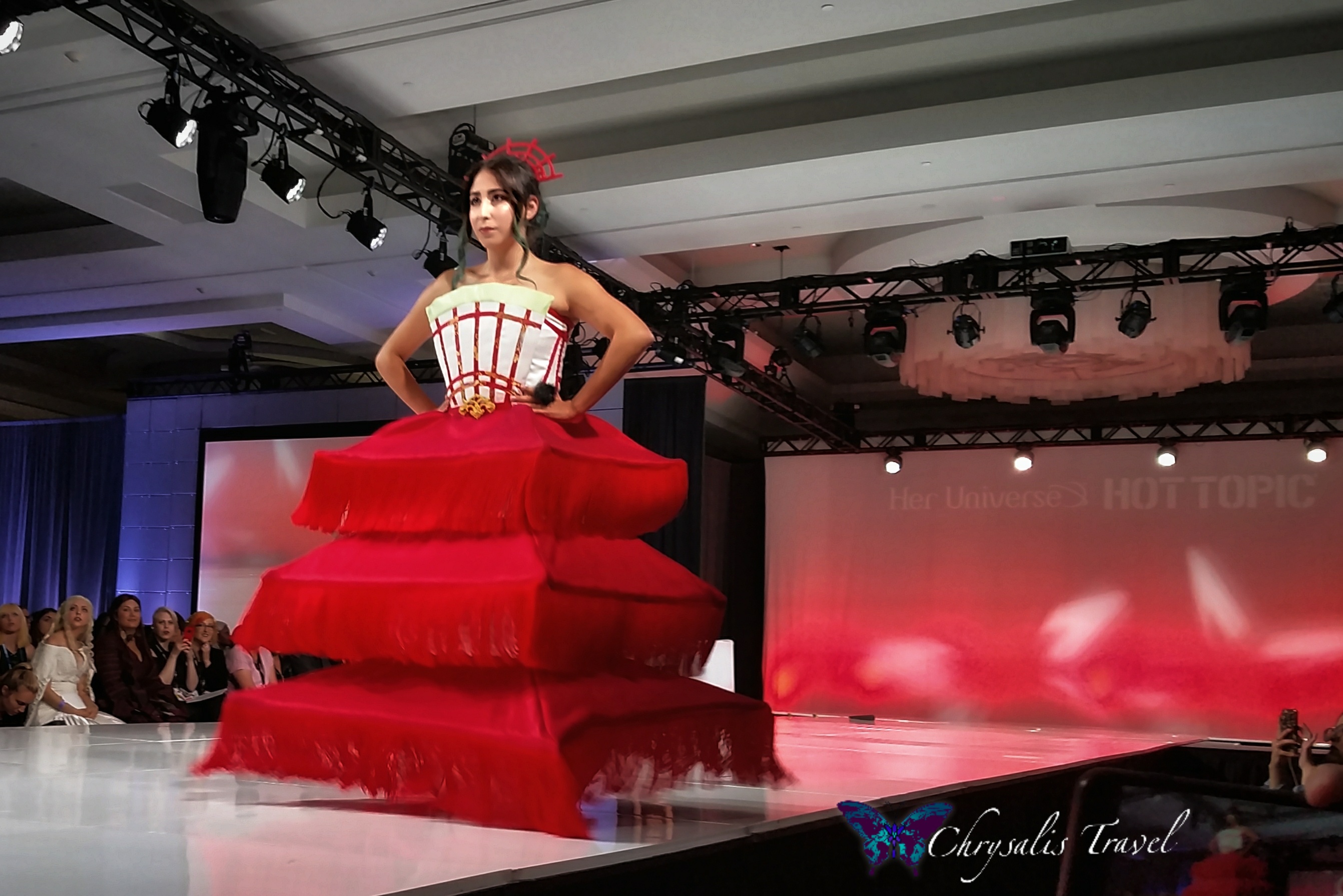 Twenty-five talented designers saw their creations walk the runway at the Manchester Grand Hyatt on July 20, 2017. (Due to unforeseen circumstances, one finalist had to withdraw at the last minute). Inspirations drew from many different fandoms. Many had Disney roots.Several gowns were themed around Disney’s Moana, Beauty and the Beast, Cinderella, and Lilo & Stitch.