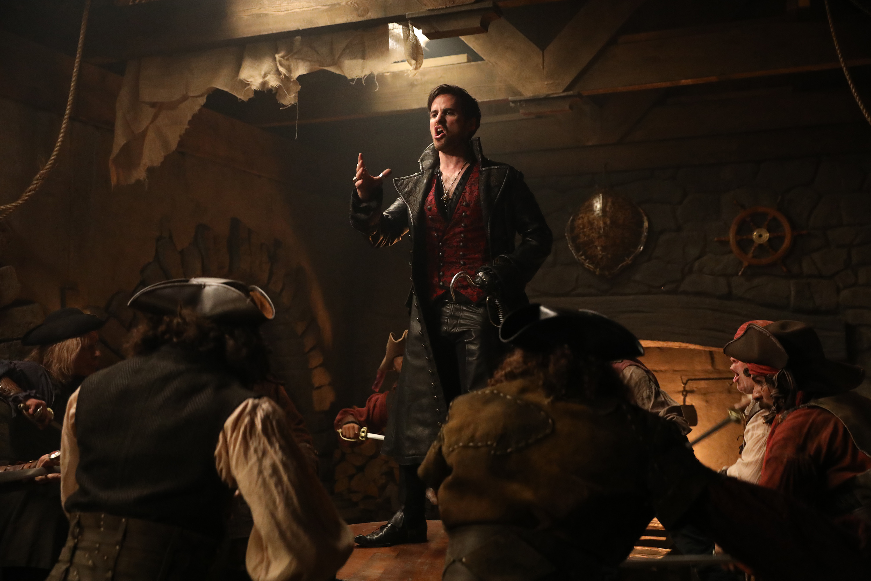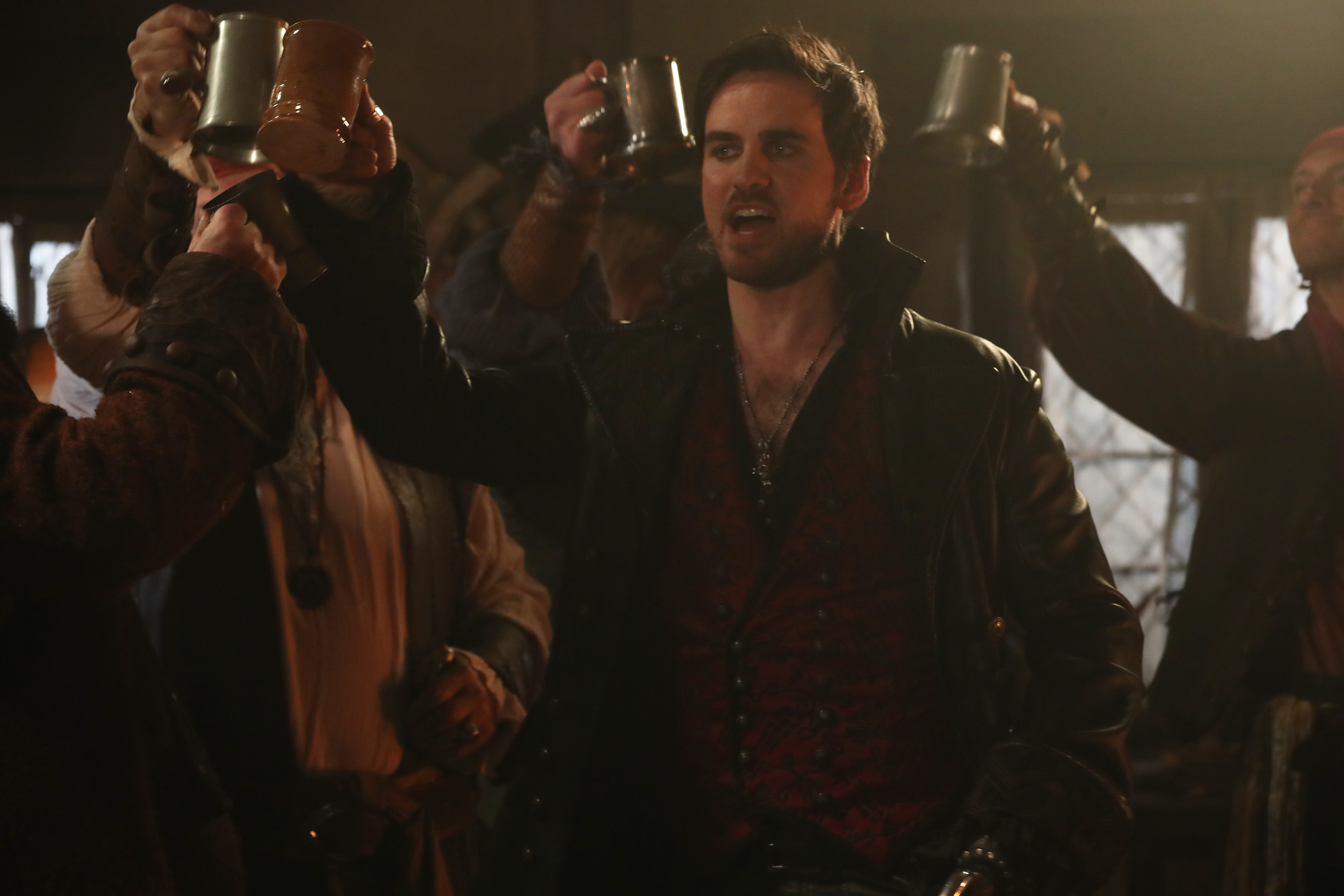After years of fan requests, Edward and Adam made wishes come true in the musical Wedding episode of UOAT: “The Song in Your Heart.” Alan Zachary and Michael Weiner (the brilliant team behind Disney Cruise Line’s Twice Charmed stage show) wrote original songs customized for our Storybrooke characters. (The showrunners assured us that there will not be a musical episode in Season 7).Colin revealed that during the filming of his solo, “Revenge is Gonna Be Mine,” he broke his foot. It happened in the scene 26 seconds into the song as he stepped off the back of a chair. This stunt went perfectly in rehearsals, but during filming, he felt something snap. Still, O’Donoghue soldiered on, trying not to wince when kicking ale glasses off the table later in the number.
