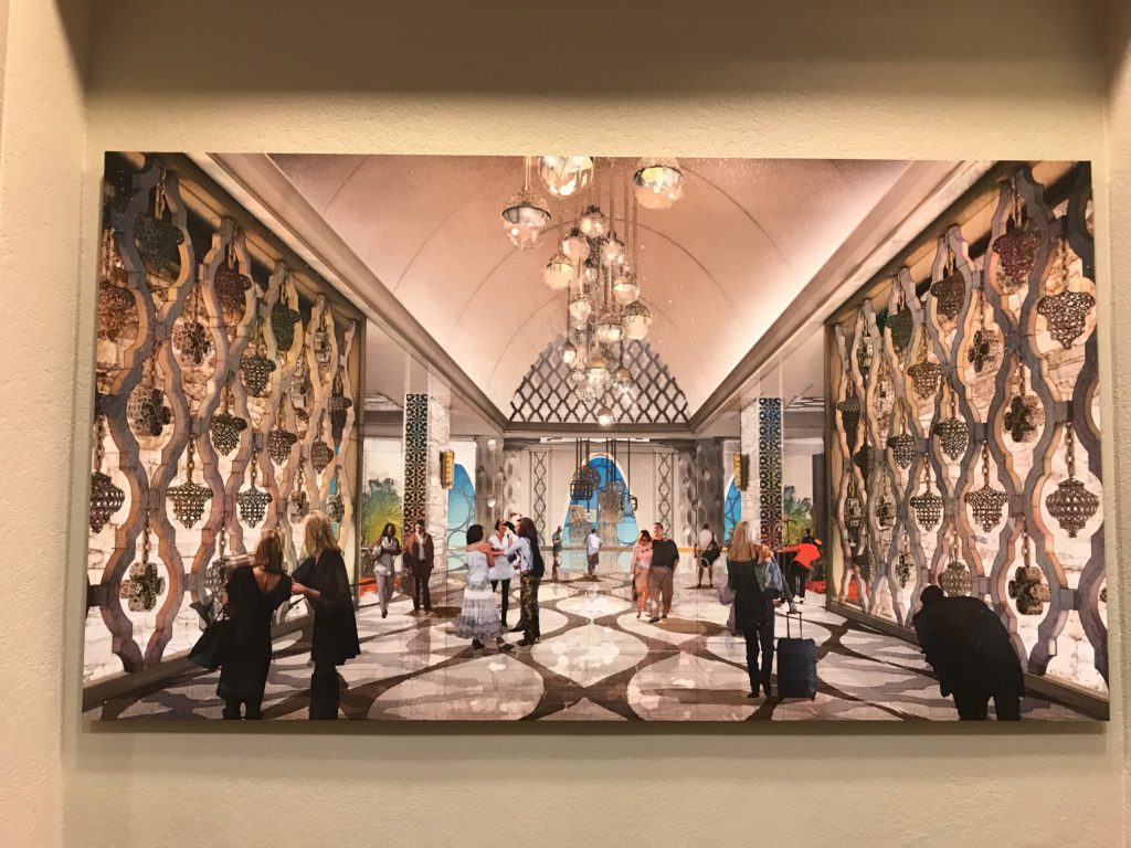 As Disney's Corondao Springs Resort continues its expansion, there is a preview of the work inside the lobby of the Resort. Guests can see a model of the expanded resort as well as concept art.