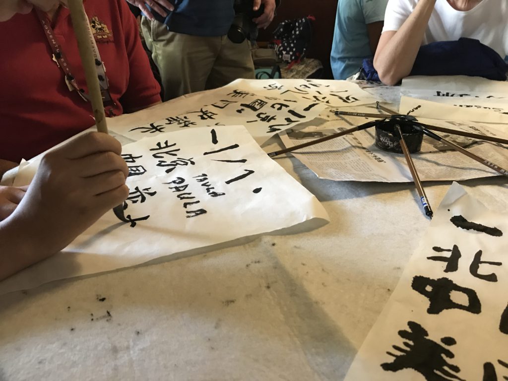 The first was Chinese caligraphy. Our teacher taught us the basic strokes of which a maximum of five are used in each Chinese character. We then followed her lead as we wrote Beijing (Northern Capital), China (Middle Kingdom), and the United States (Beautiful Kingdom). She then went to each of us and wrote our names in Chinese. When a foreigner gets a Chinese name, it is made up of words that sound similar to their western name. It was nice to know that they try to find the nicest option. We also learned that since it is so hard to write, that few Chinese practice calligraphy today. On cell phones, they often use voice recognition. They can also start by typing the word phonetically using our alphabet and then the keyboard will suggest the appropriate Chinese characters.