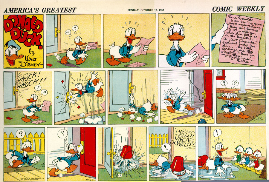 Just over 80 years ago (October 17th, 1937), a triplet of ducks, described as "angel nephews" debuted in a Sunday morning Donald Duck comic strip. Huey, Dewey, and Louie were sent to stay and terrorize their Uncle Donald till their father was out of the hospital after a firecracker "accident." These three ducks would go on to be some of the most popular Disney characters staring in countless cartoons, comics, along with a few video games, and animated features.