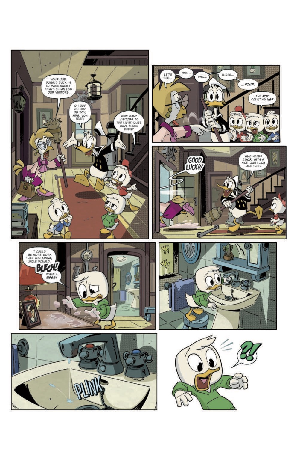 The second story "The Great Experiment of the Washing Machine" really draws out the personalities of the boys and highlights Donald and his temper as Huey, Dewey, and Louie explore the Bombastic Band of Brains laboratory each looking for an experiment that reflects who they are. This story really is more of a true episode of DuckTales in print form as the action and comedy are put out to the readers perfectly. But as with the first one, it is just ten pages which really left me wanting more.
