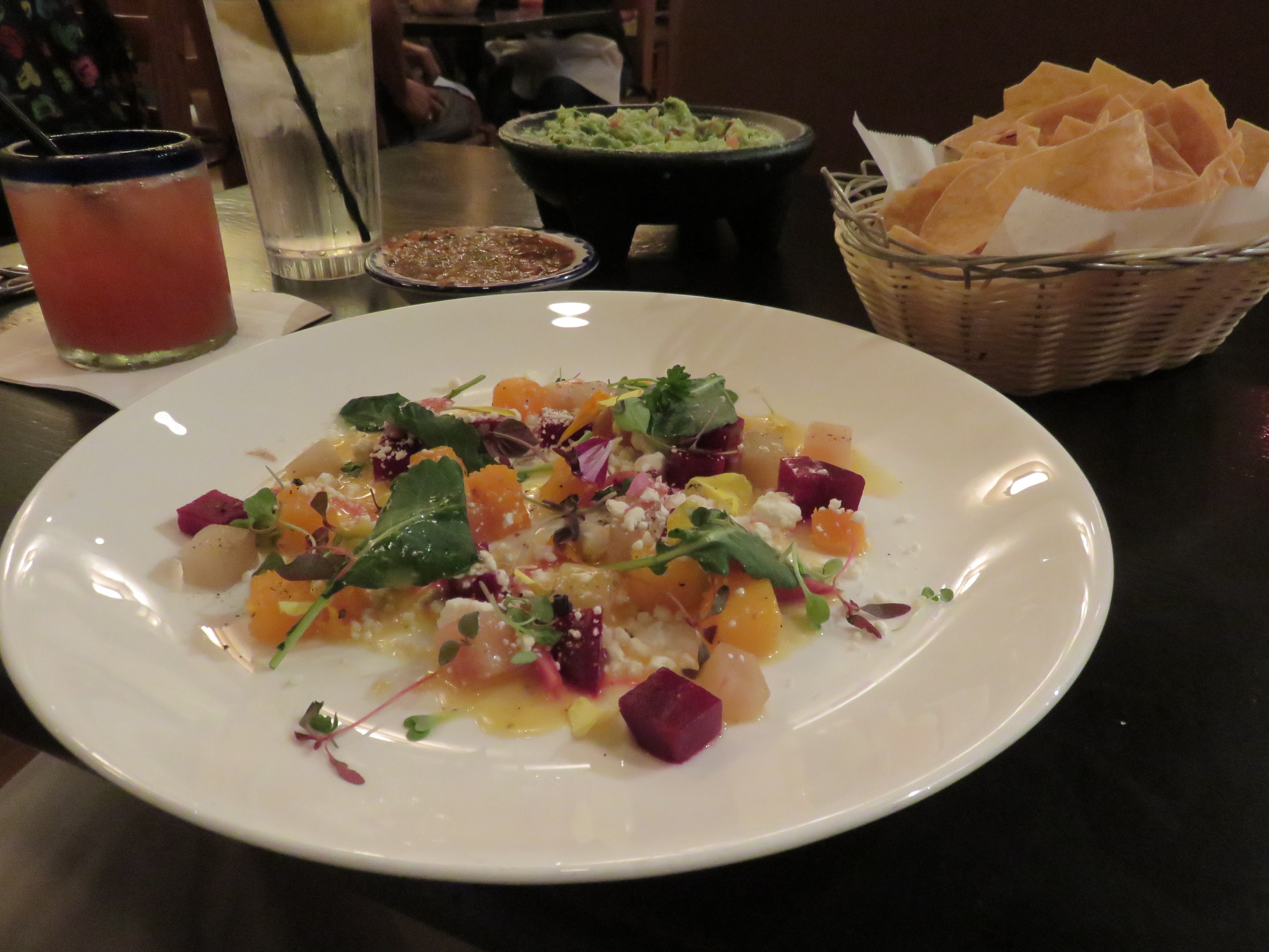 After enjoying the infamous Tortilla Jo’s tableside guacamole and sipping on the Posado Punch, which is a perfectly smooth drink to enjoy on a warm day, the salad appetizer was delivered. The salad was not so much made up of lettuce, but more of a lite vegetable mixture to start the meal. A sweet flavor balanced out by goat cheese crumbles made for a surprisingly pleasant salad.