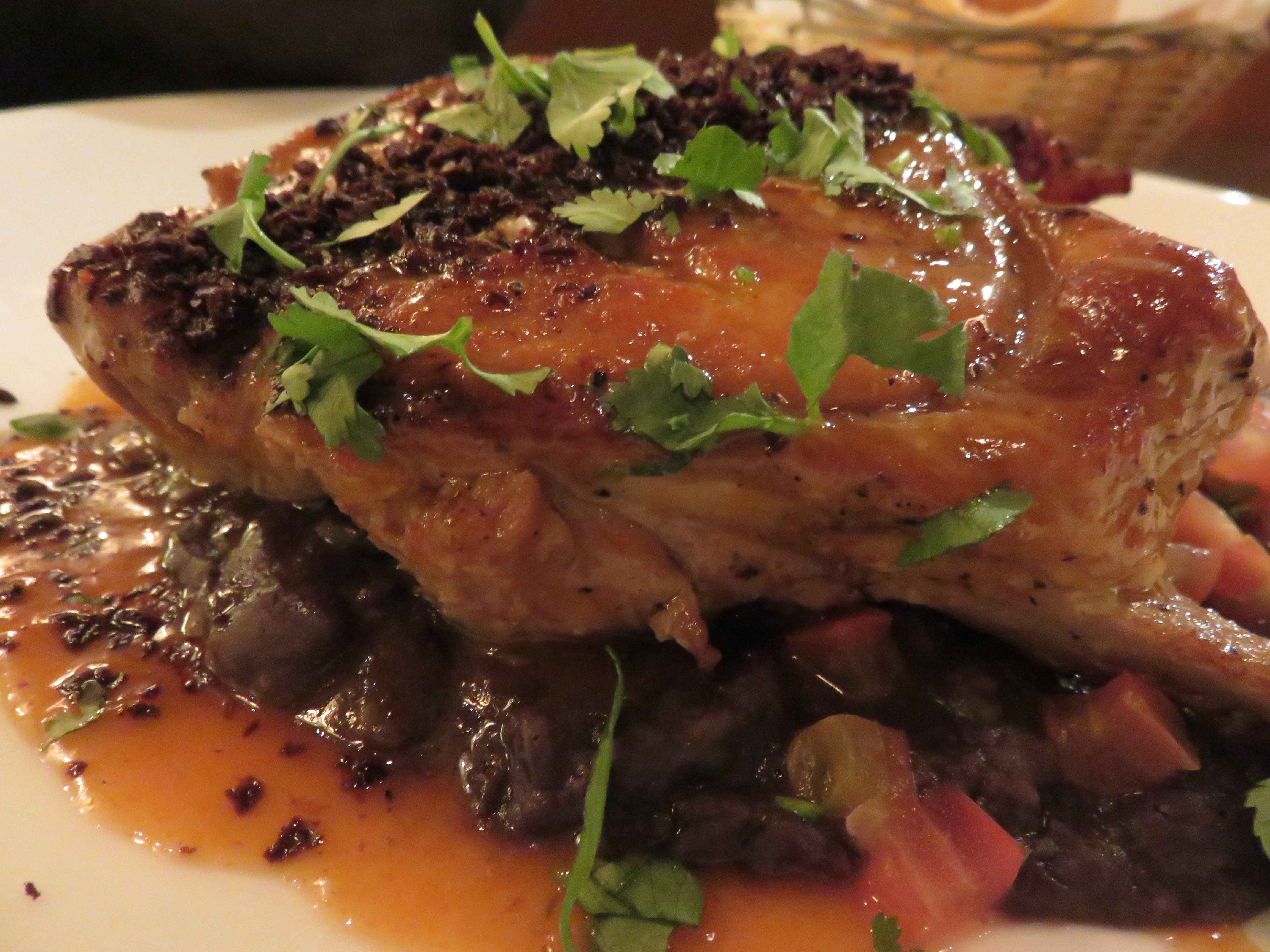 For the main dish, I had the the pork chop which was thick and filling with a little bit of a kick to the flavor. The whole dish was rounded out with complementary flavors of black beans and roasted plantains.