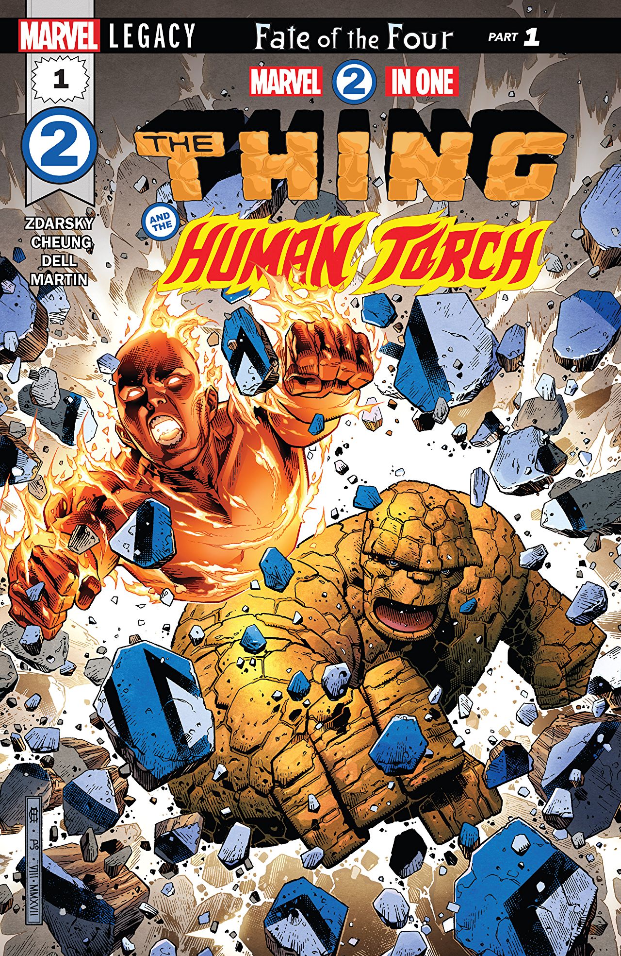 Reed Richards and Sue Storm are lost in the cosmos, and half of their fantastic team are left trying to cope and live without their friends and family. In Marvel 2-In-One #1, we get to see how Johnny Storm and Ben Grimm are surviving now that they are not the Fantastic Four. Depressed and seemingly losing his powers, Johnny Storm is getting himself in all kinds of trouble. While Storm is in the depths of despair, Ben Grimm is handing out an inaugural award in memory of Reed and Sue, oblivious to the hurt that Johnny is in.