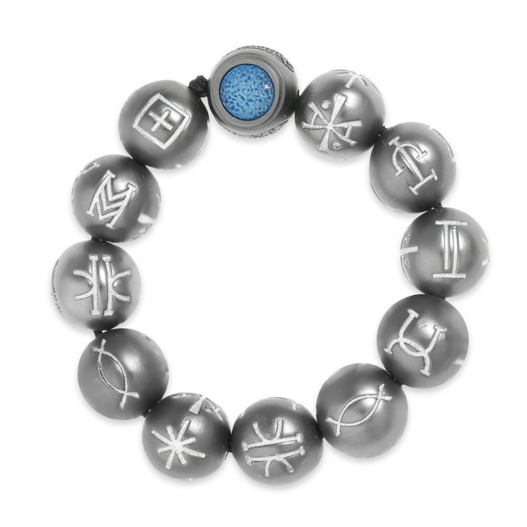 With incredible science at work in Wakanda, controlling weapons, armor and more is possible at the touch of a bead. This replica bracelet won’t let you start your car or change your clothes into armor, but it will look fantastic! Each bead is engraved with Wankandan glyphs and the main bead has a blue enamel that glows in the dark.