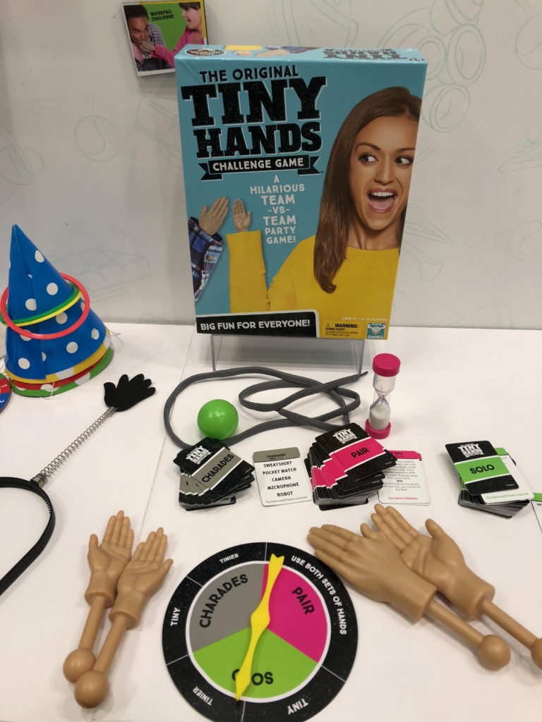 [gallery link="file" size="medium" ids="239120,239121"]Tiny Hands takes the internet video trend and applies it to a party game, with tiny hands and tinier hands included. Players spin the wheel and must perform a task either with the tiny hands or the tinier hands, resulting in hilarious situations.