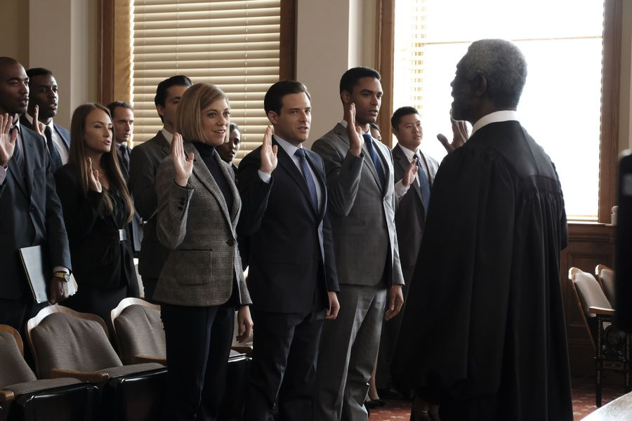 As for the characters themselves we have a very interesting group of people. Each is young, energetic, confident in themselves, and holds strong personal beliefs. This show gives them moments to shine, but also dishes out some serious lessons in errors of judgment and mistakes. Sandra (Britt Robertson) is a public defender who's a spirited go-getter. She's willing to rise to any challenge or even seek one out. On her first day she asks to be put on duty—take on any incoming cases—and winds up with defending a suspected terrorist. Prosecutor Leonard (Rege-Jean Page) always gets (or takes) what he wants and convinces his supervisor to exchange his current "easy" assignment with the terrorist case. A win for him and a slap in the face of his coworker Seth (Ben Rappaport). Seth is in a relationship with public defender Allison (Jasmin Savoy Brown), and after losing the terrorist case to Leonard, winds up as her opponent in court. (It's juicy stuff, folks!) Finally, we have Kate and Jay. Kate (Susannah Flood) is a super organized, by the book, pay attention to every detail prosecutor, a la Paris Gellar from Gilmore Girls minus the snarky-ness. Jay (Wesam Keesh) is an optimistic, if not naive, public defender who believes he can trust his first client and gets a harsh does of reality when said client calls him a "real tool."