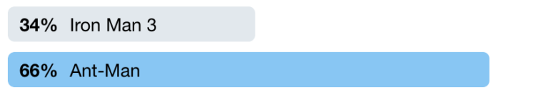 Well it looks like the under-ant packs a powerful punch. Beating Iron Man 3 with 66% of the vote, Ant-Man managed to crawl away with the win. Will he be able to hold his own in Round 3? Stay tuned to see what happens!