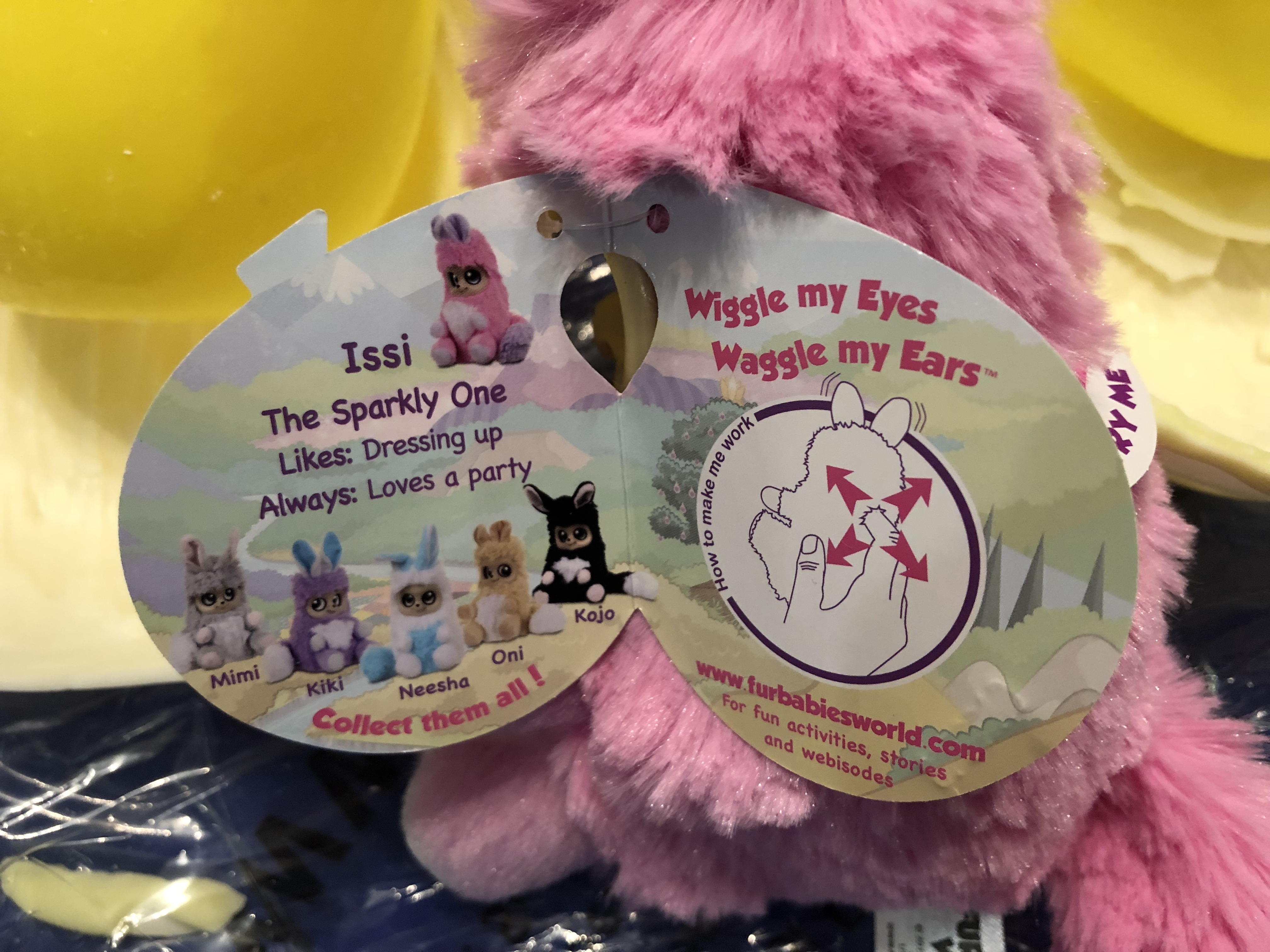 Fur Babies aren't just a plush, but also a puppet that can be operated with one finger. Behind Issi's head is a hole that allows you to operate her controls with just one finger.