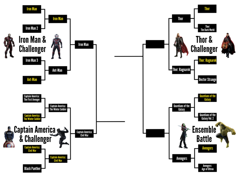 Welcome back to our annual Mouse Madness tournament! This year, our champion will take home the title of best film of the Marvel Cinematic Universe…so far. We’re looking at 16 of the 18 films (sorry Hulk and Spidey) to determine which story is better than the rest.