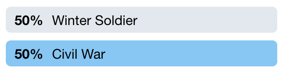 This match up almost called for overtime. The closest battle by far, Captain America: Civil War wins the match with 1 vote. Will he be able to beat Iron Man in Round 3? Keep voting and see what happens.