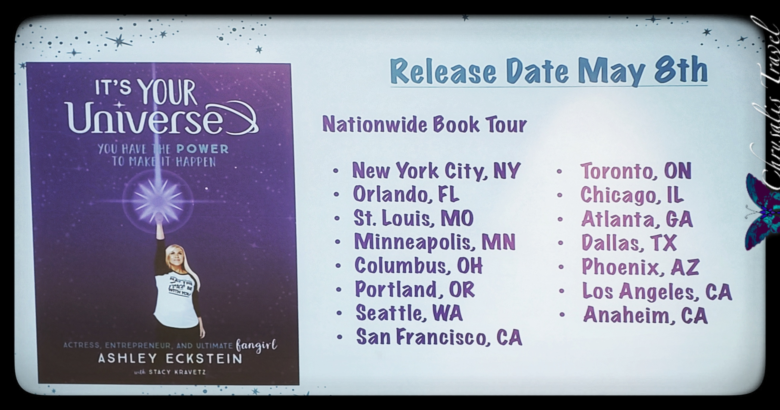 Ashley just completed her book: It’s Your Universe – You Have the Power to Make it Happen, releasing on May 8, 2018. She also announced her nationwide book signing tour, spanning cities from Orlando to Anaheim.