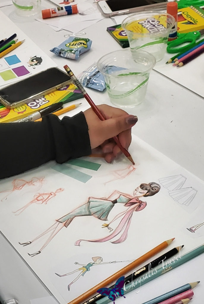 She described her creative process in constructing new fashions, as she brought Grace, Rose, and Lindsay to meet the Hot Topic and Disney licensing teams. It’s a complicated balance, involving intellectual property and fashion research.