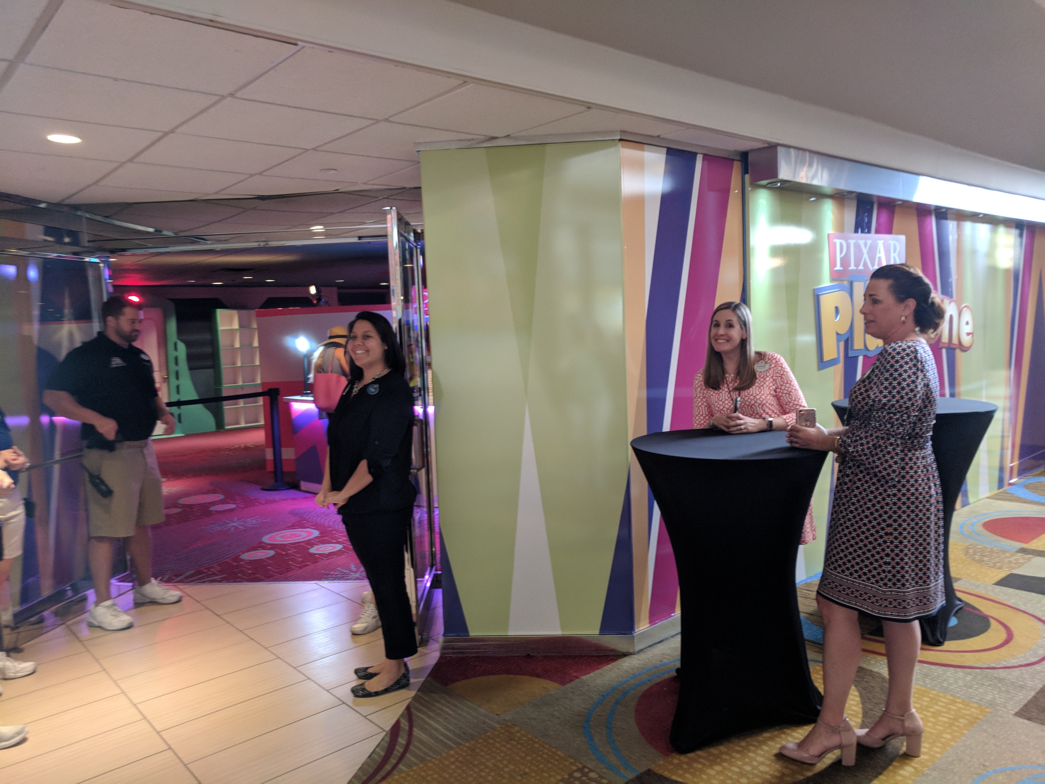 The offerings and design at the Pixar Play Zone will be familiar to any Disney fans whose children have experienced Disney Cruise Line’s Oceaneer Club. And as with the Oceaneer Club, kids can join in on the organized fun or have their own fun. In addition to the evening’s activities Pixar’s Play Zone has a variety of crafting opportunities as well with coloring pages, a suncatcher type coloring activity and others all featuring characters from the world of Pixar, and reminiscent of Pizza Planet, there’s also an arcade. The games are all free play and the team selected games that encourage interaction with others such as head to head challenges like skeeball, Hoops or Fast and the Furious, active play such as Surfers or Alpine Racer and for the younger set they even have the arcade game Super Big Rig which offers smaller kids the chance “drive” with a seat big enough for two so they can invite a friend to play along.