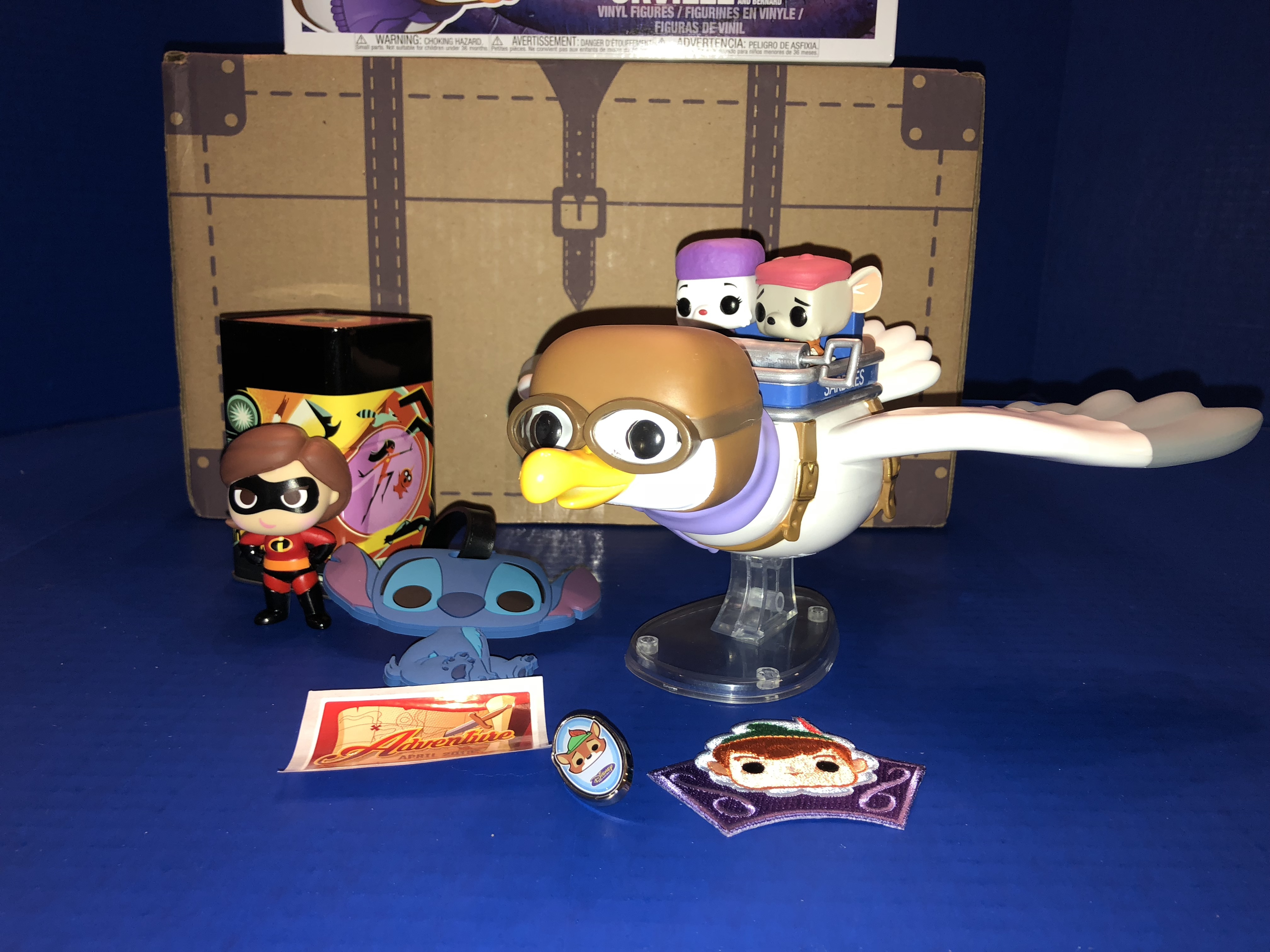 The star of this box is Orville with Bernard and Bianca from The Rescuers as a Pop! Vinyl figure. It's so big that one of his wings is intentionally detached so that he fits in the box. The wing is easy to snap into place and can also be removed in case you ever need to repackage him. It's one of the most beautiful figures they've ever released.
