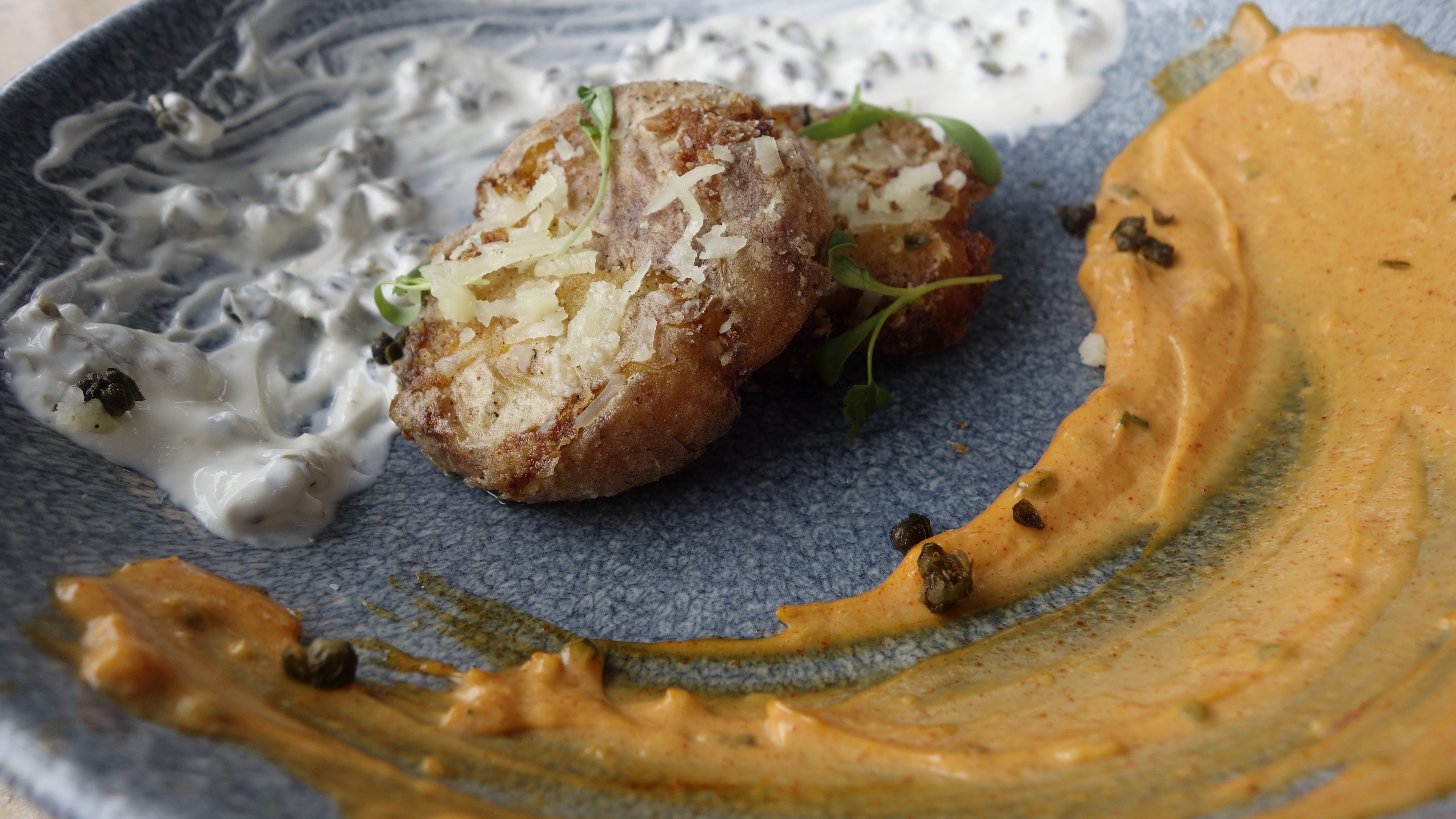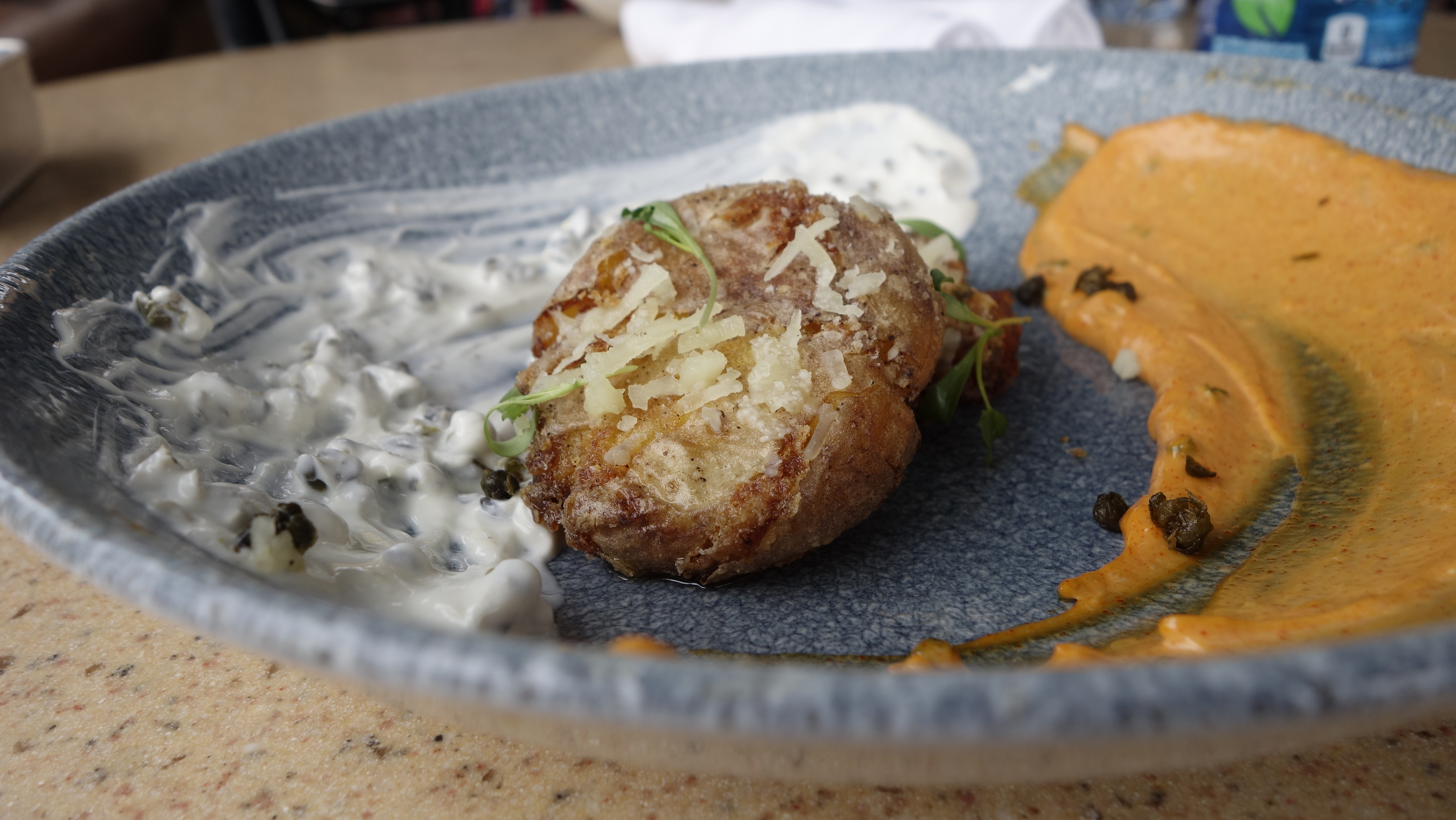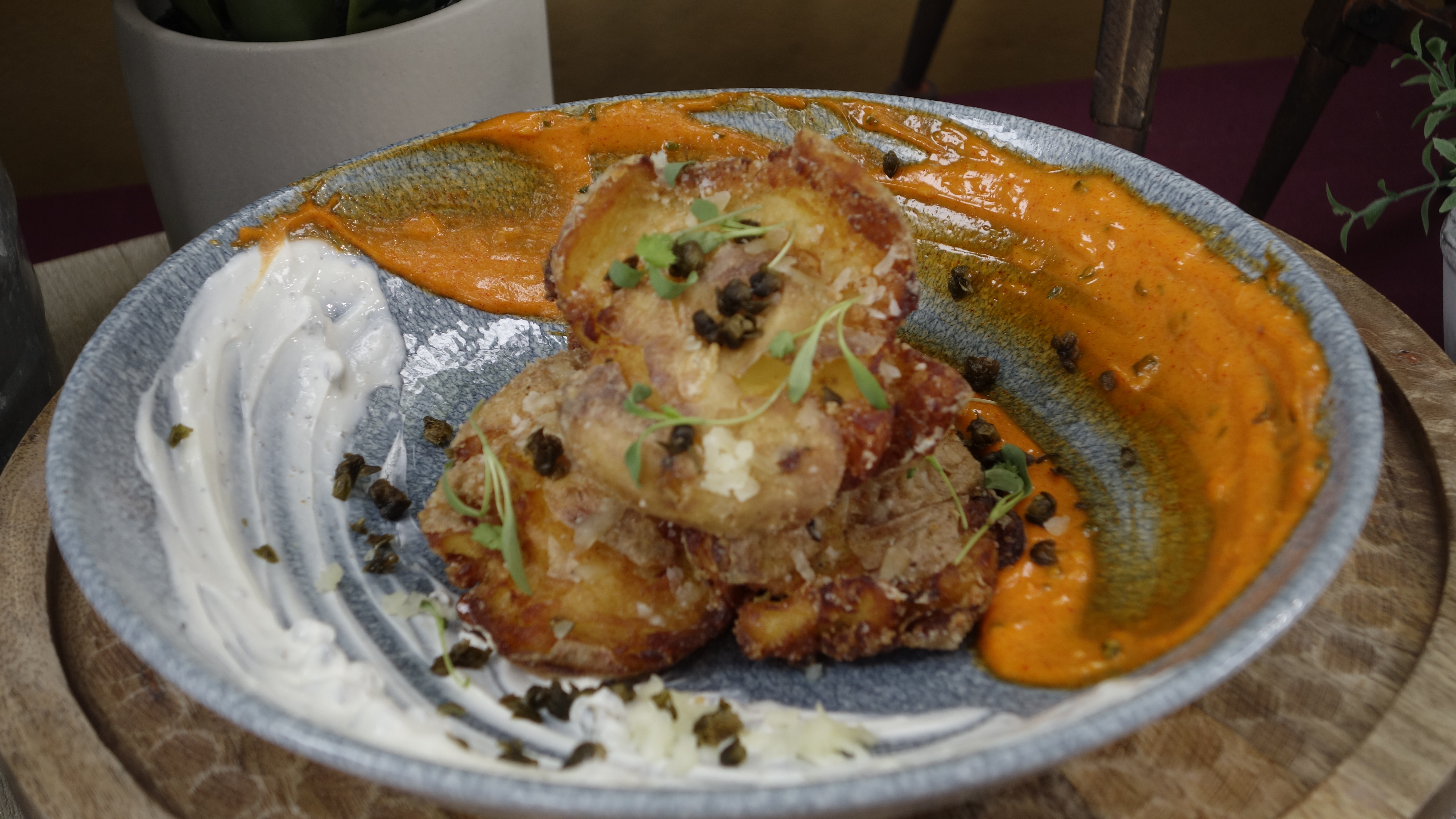 These smashed Yukon gold potatoes were heavenly. The potatoes were cooked to a perfect crisp on the outside while remaining soft, but not mushy, on the inside. There's a subtle sweetness from the potatoes that compliment the saltiness of the cheese and capers. The brown butter yogurt adds a touch of tanginess, and the paprika aioli is rich and flavorful. It's not a spicy dish making it perfect to share with everyone.