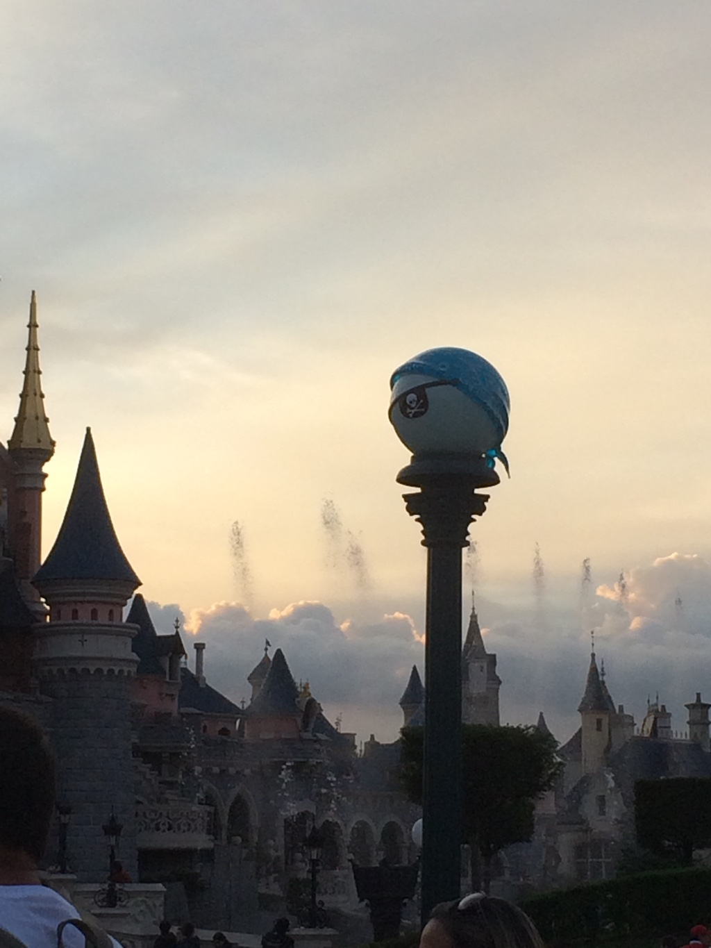 The lampposts all around the Hub were decorated as either Mickey Mouse "princesses" or eye-patched "pirates"Late in the evening and before fireworks (around 9:30 pm), fans met at the Hub for a mini dance off to the theme song from the parade. We're not exactly sure how it worked, but our best guess was that any guest could join in as long a they chose a side. We also think this is something that happened every day as a way to bring a little more magic to the Festival. Some guest were even dressed in pirate costumes or dresses and tiaras.