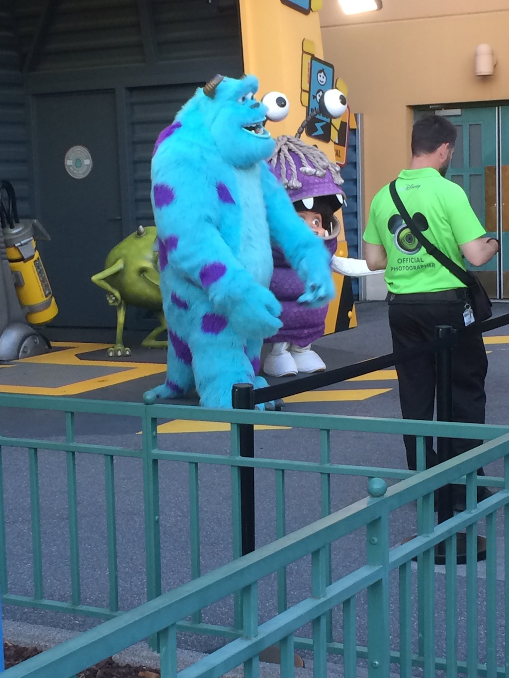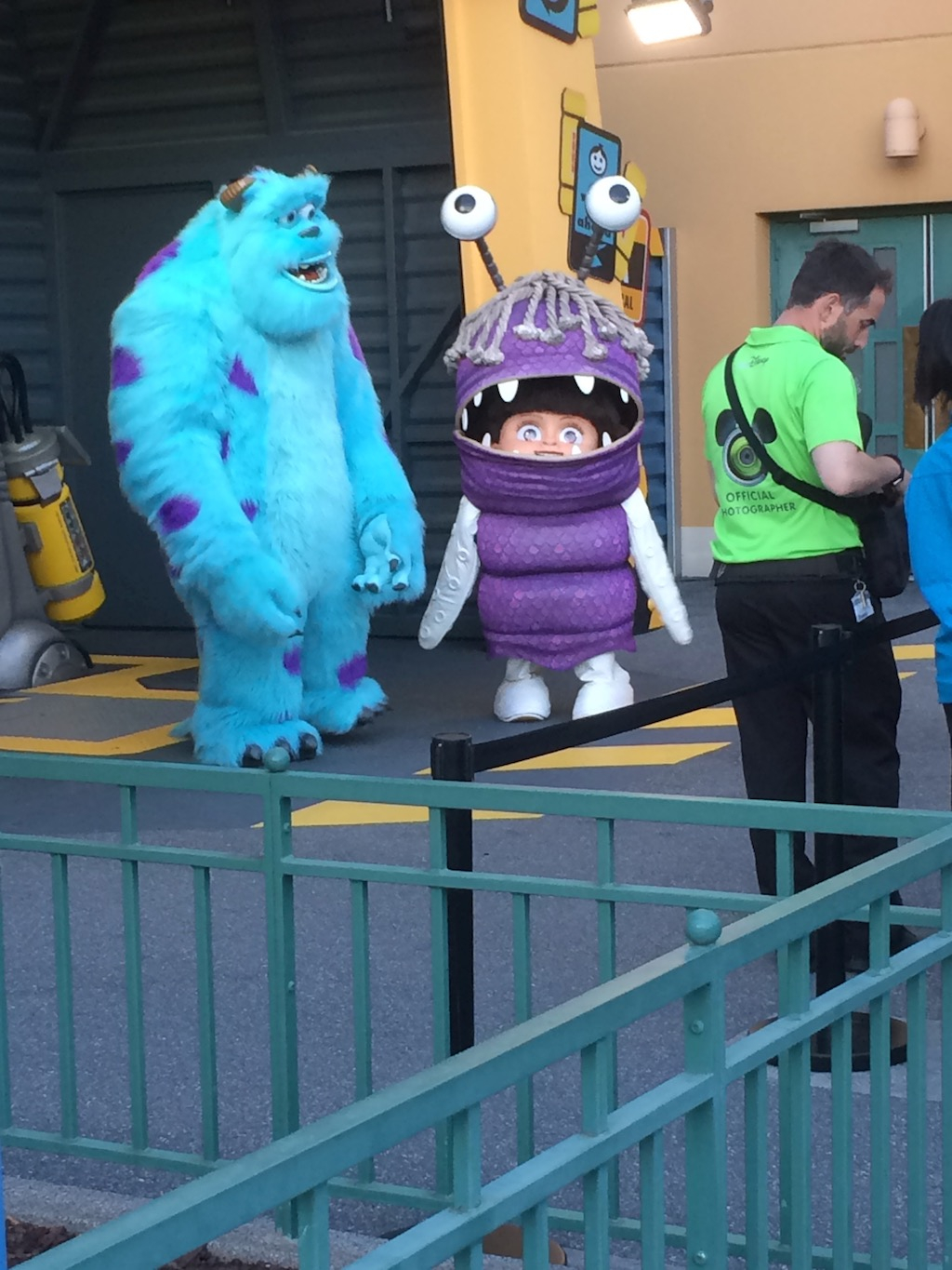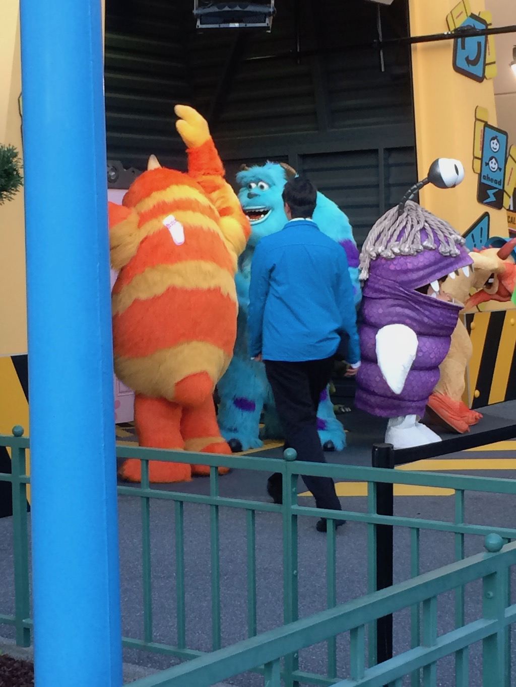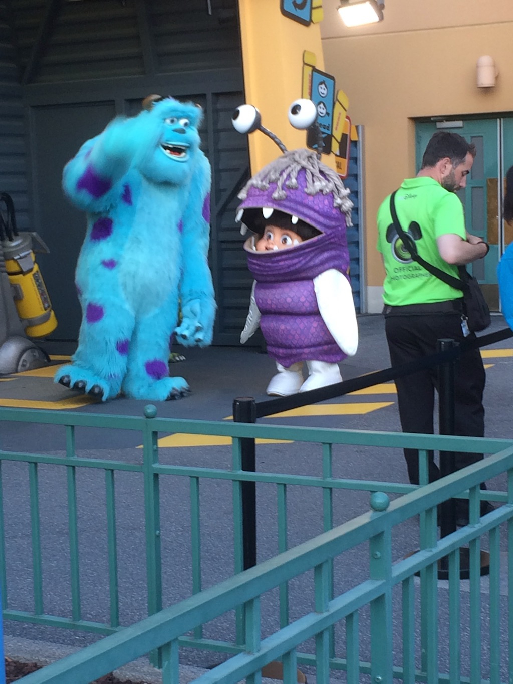Sulley, Boo, and George Sanderson from Monsters Inc.