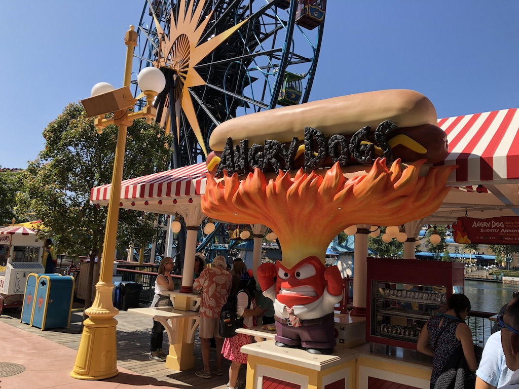 When Anger's not in control of Riley's emotions, he comes over to Pier to sell his signature hot dogs...in a variety of spice levels. The angrier he is, the spicier the hot dog!For more about this updated land, check out our Complete Guide to Pixar Pier.