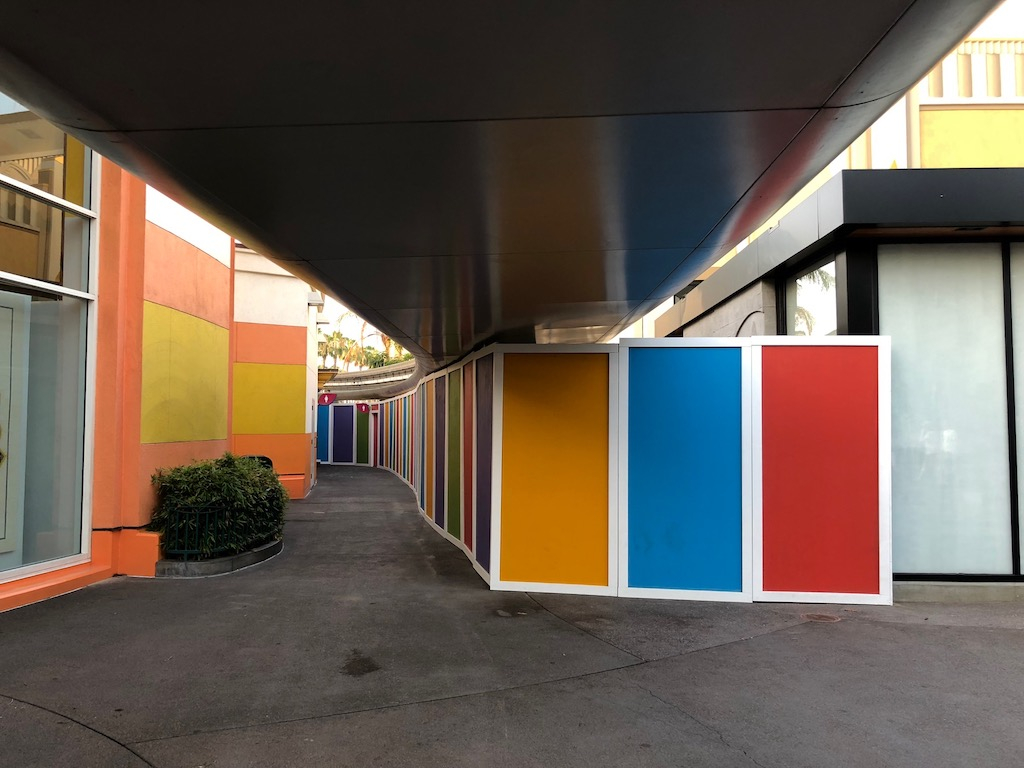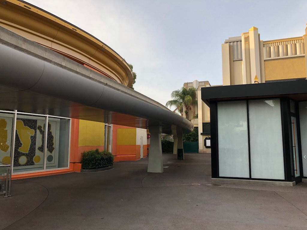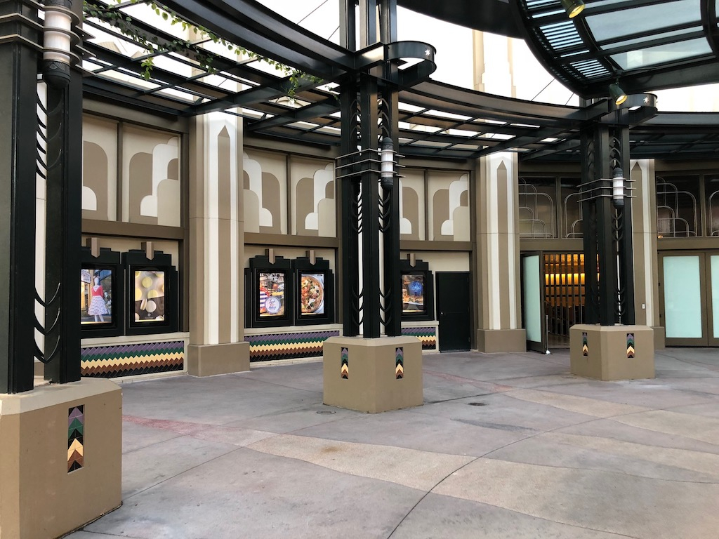According to security cast members, a move to a new location was imminent. Since the entire area was scheduled for demolition and site preparation, a new security location was to have been established between the east end of the AMC Theater building and the Lego Store. Guests would have been routed completely around the AMC Theater and through an area that had previously been used by cast members. But work on the new gate, expected to be temporary and therefore quickly accomplished, has taken weeks longer than anticipated. According to several sources, there is an issue with the area immediately adjacent to the former Richfield Gate.