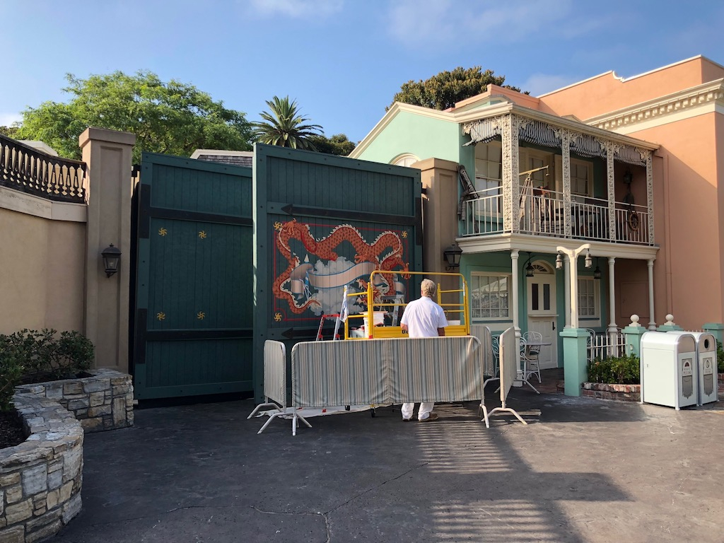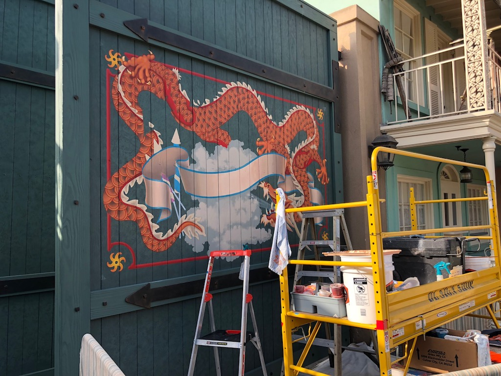 Small details add to the ambience of Disneyland. The “Laod Bhang Co. Fireworks” mural is being replaced in Frontierland.