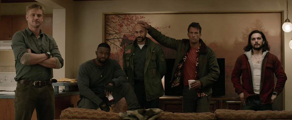 The movie wastes no time jumping right into some cheesy CGI and introducing some familiar, dare I say overused, military characters. The CGI unfortunately never really gets better but the characters do. Aside from our hero Quinn McKenna (Boyd Holbrook) and the clumsy doctor Casey Bracket (Olivia Munn), who are both a bit problematic, the cast is filled with fun characters.