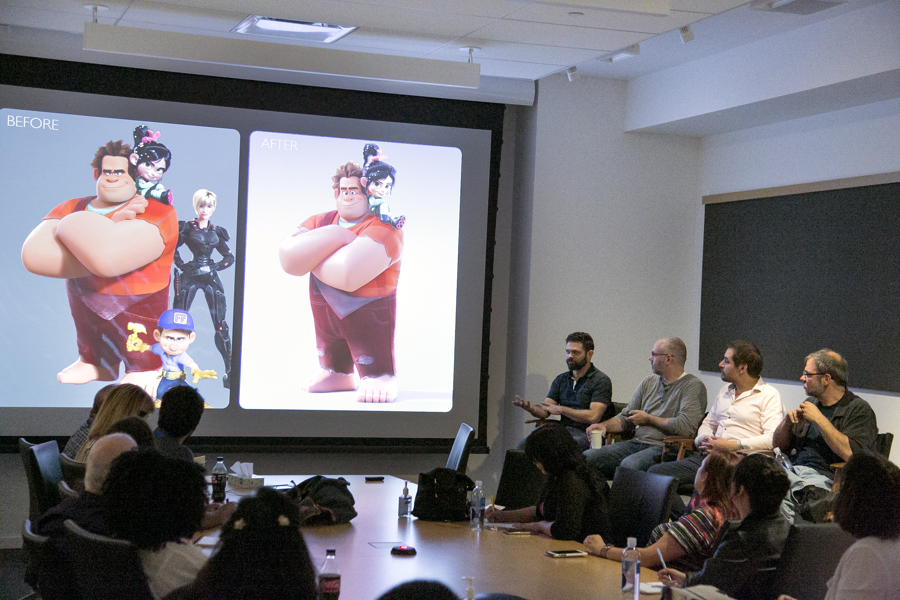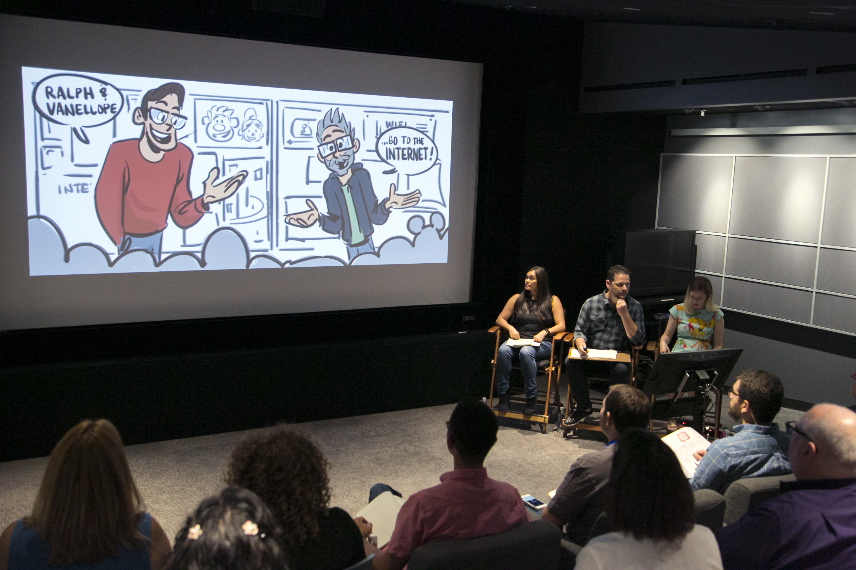 Head of Story, Josie Trinidad, shared how daunting it can be to write a Disney Animated Feature, even when it’s a sequel. “We had about 15 Story Artists on our story team, we had about 10 screenings including an audience preview. 45 total sequences are in the film and actually there were 153 total sequences boarded, so over 100 sequences were thrown out of the movie. And 7,883 total sequence versions, so that’s every kind of iteration that each artist does that makes a change on these sequences. And a whopping 283,839 storyboards drawn for Ralph Breaks the Internet. Another day in the life of a Story Artist.”